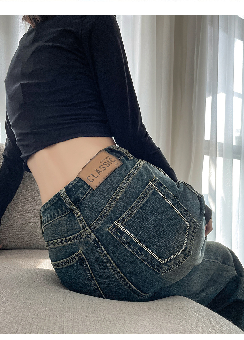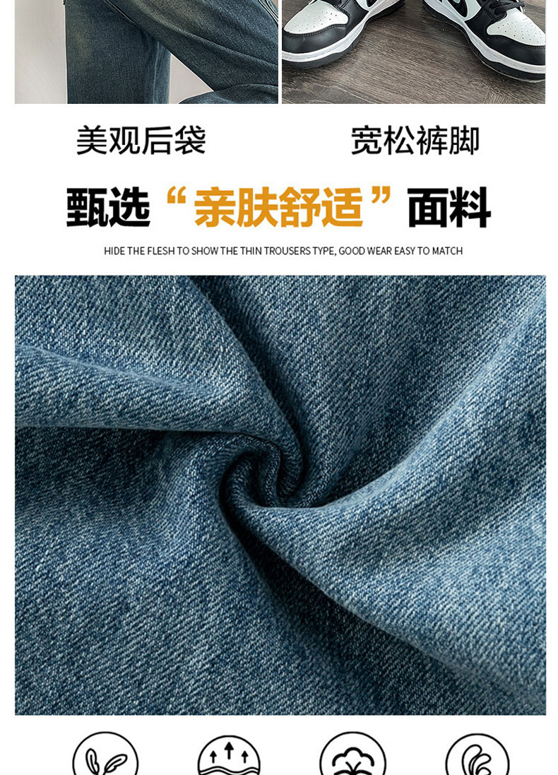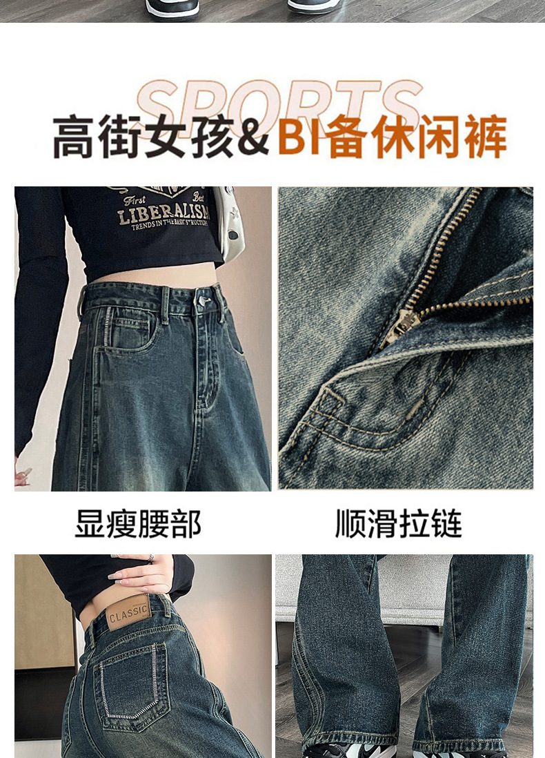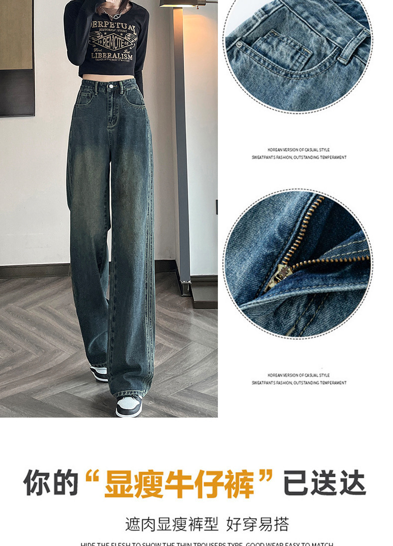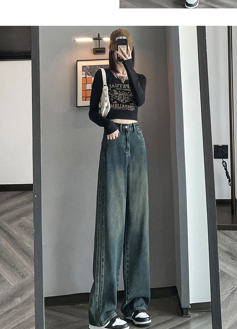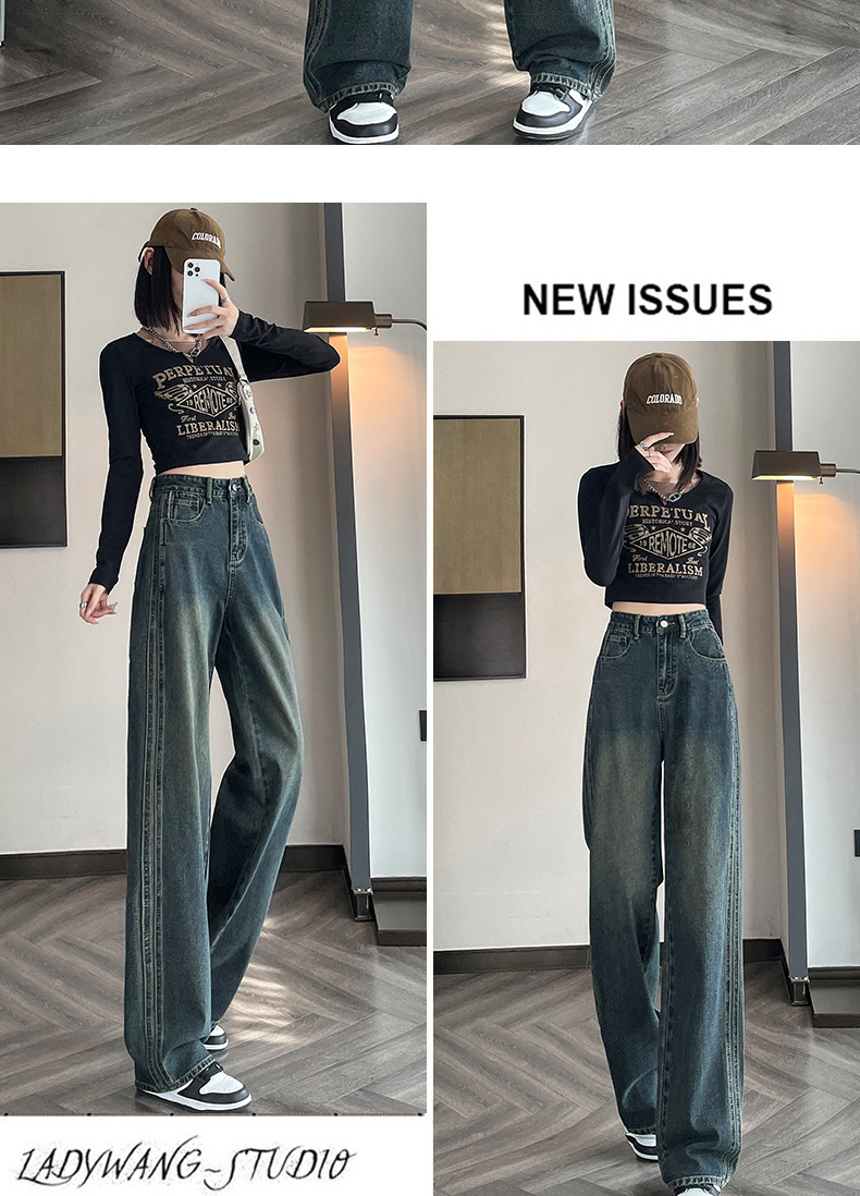 水泥灰窄版直筒牛仔裤女春装2024年高腰宽松显瘦小个子垂感阔腿裤