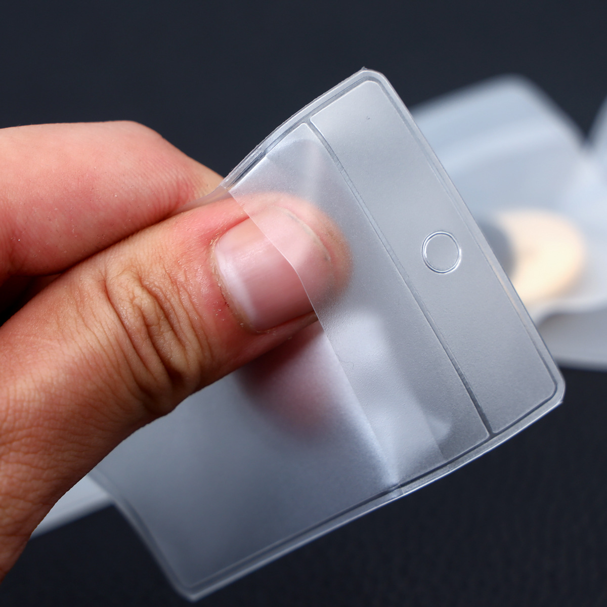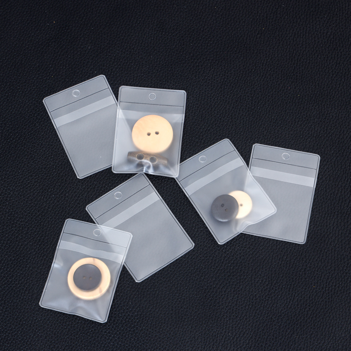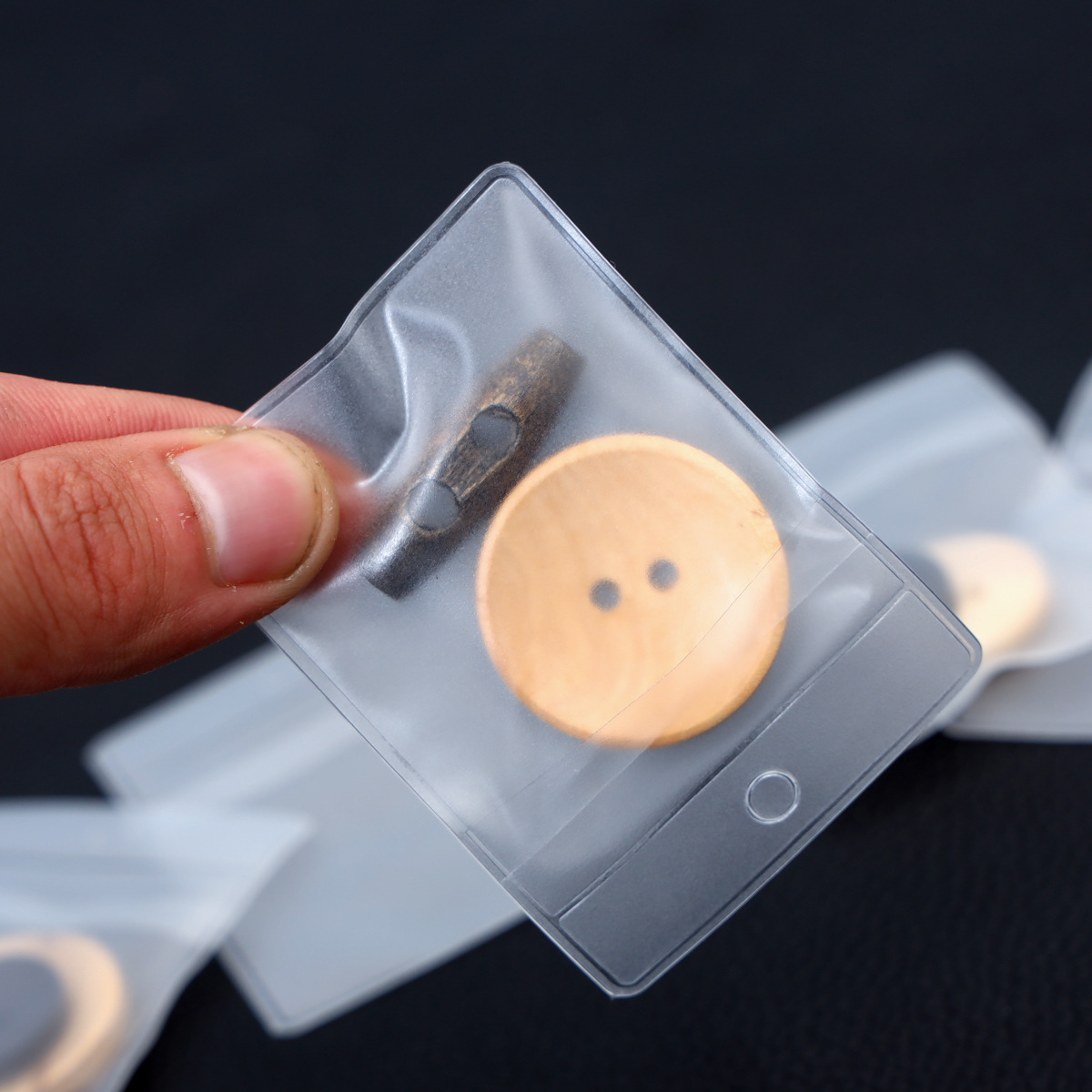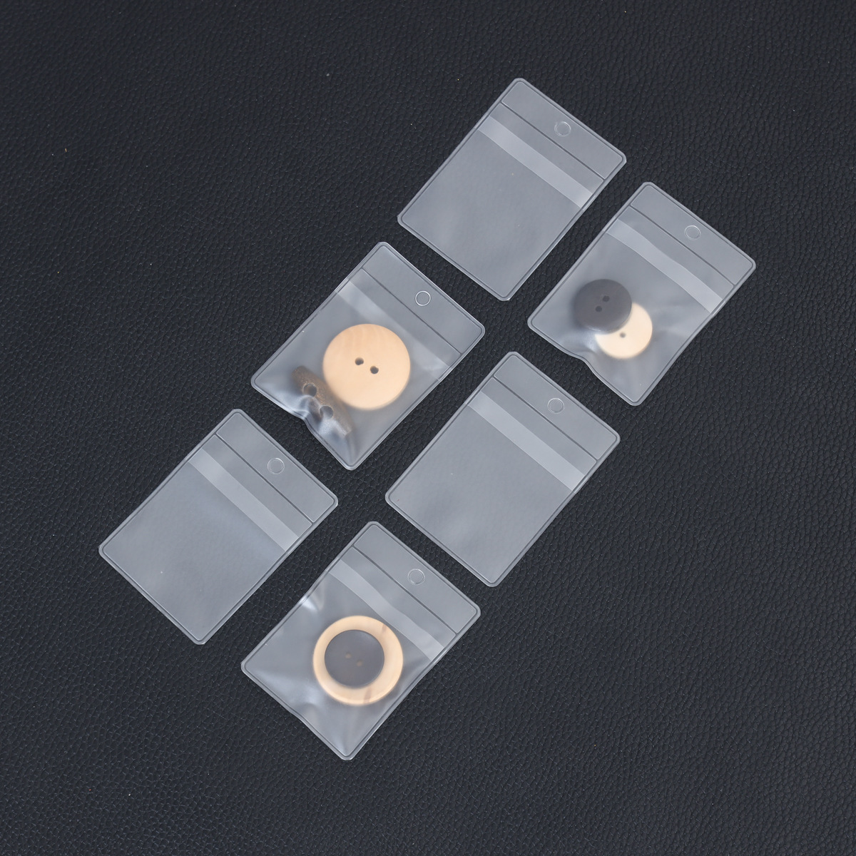 Label kerah gesper cadangan PVC grosir tas kecil label merek dagang buram transparan tas kancing berlubang plastik