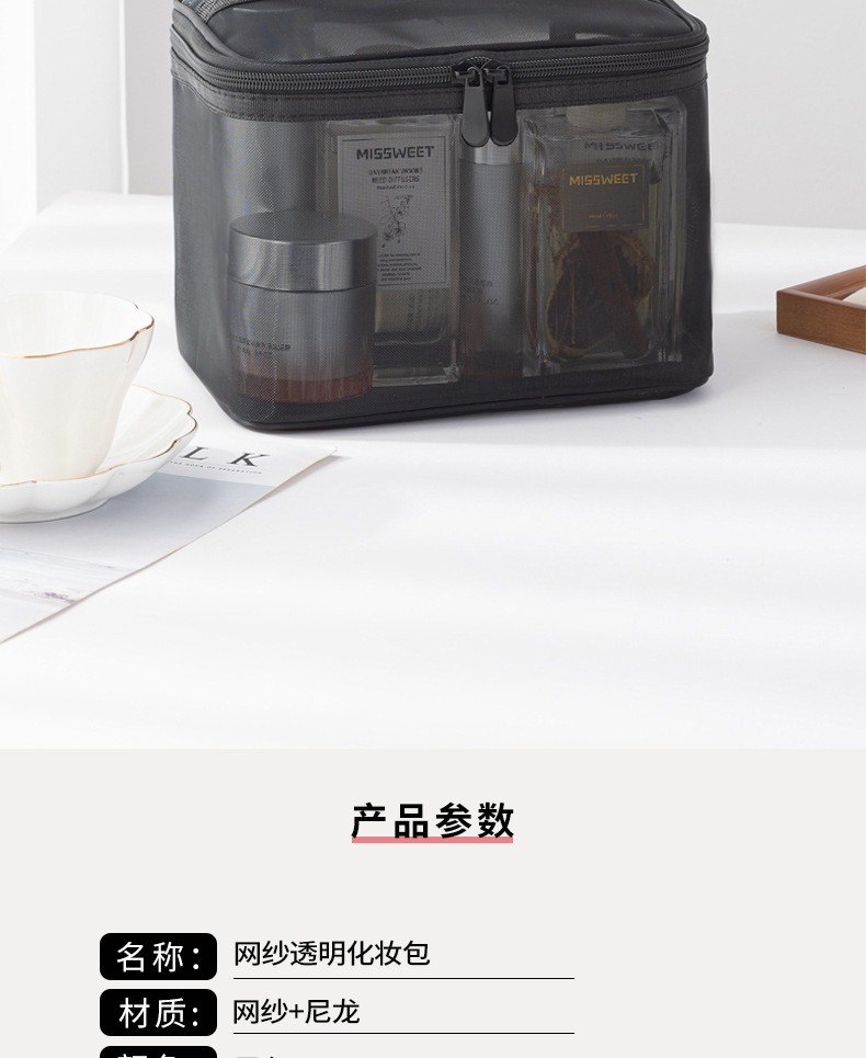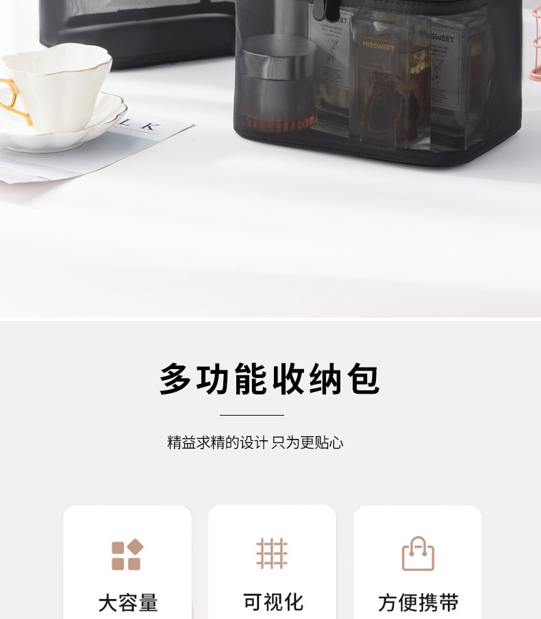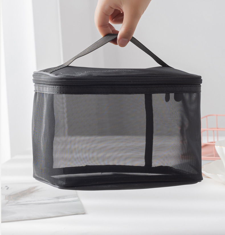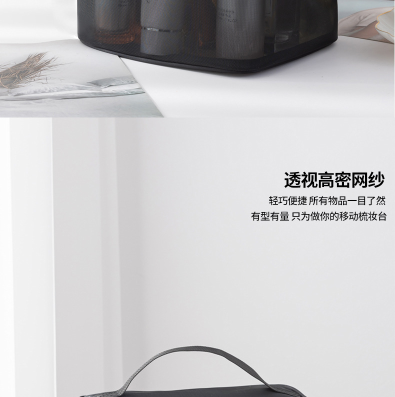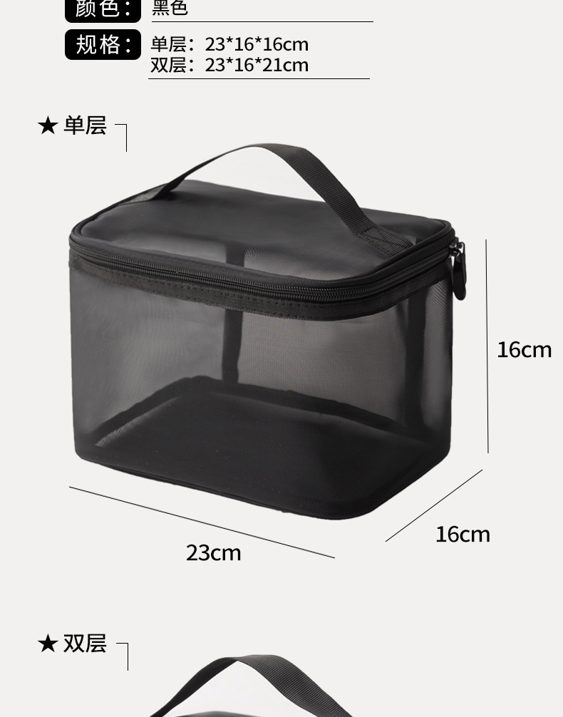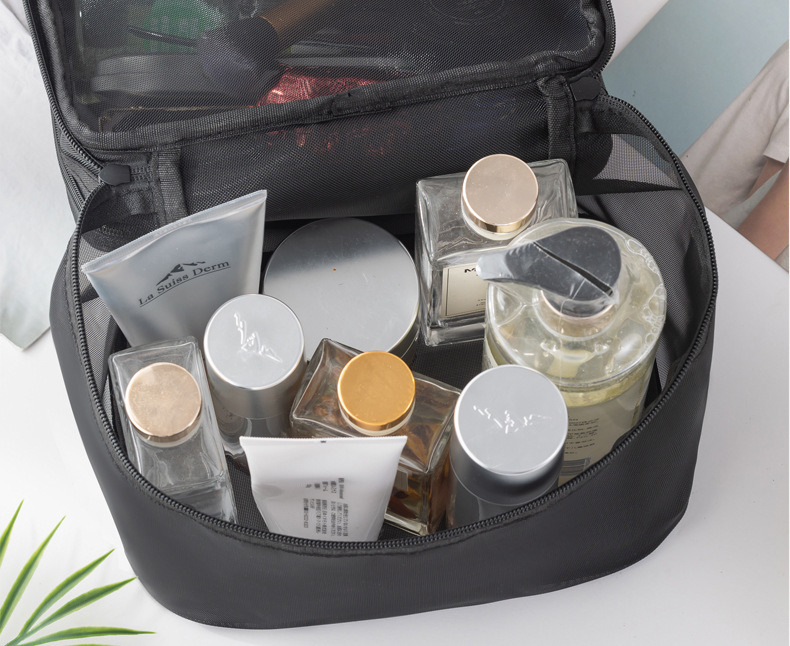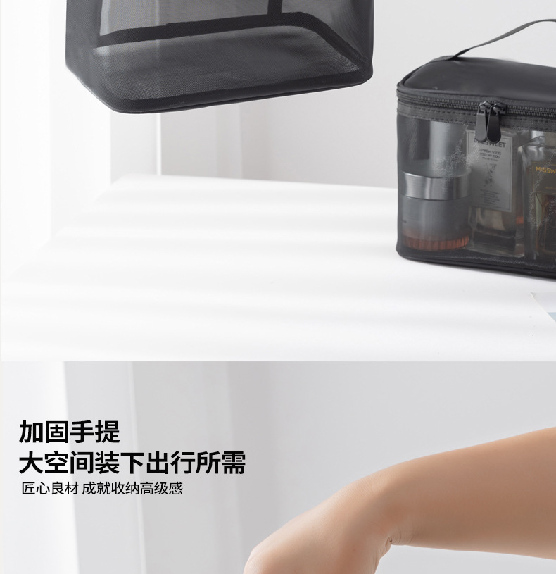 Tas kosmetik dua lapis dengan kapasitas besar, model 2025, tas penyimpanan kosmetik transparan jala nilon portabel, tas perlengkapan mandi.