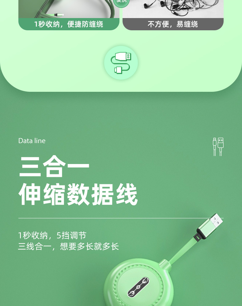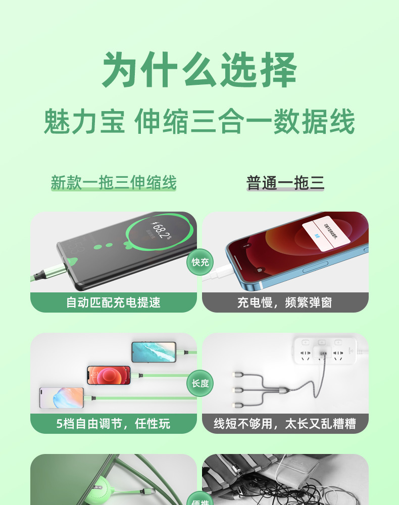 Kabel Data Opsional Multicolor 3-in-1 Hadiah Bisnis Ponsel Portabel Satu Seret Tiga Multifungsi Kabel Pengisi Listrik Teleskopik