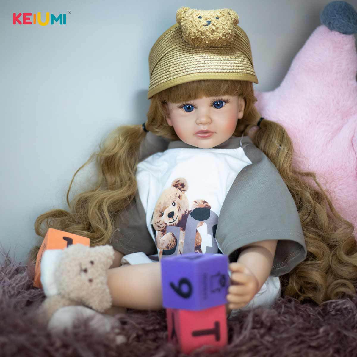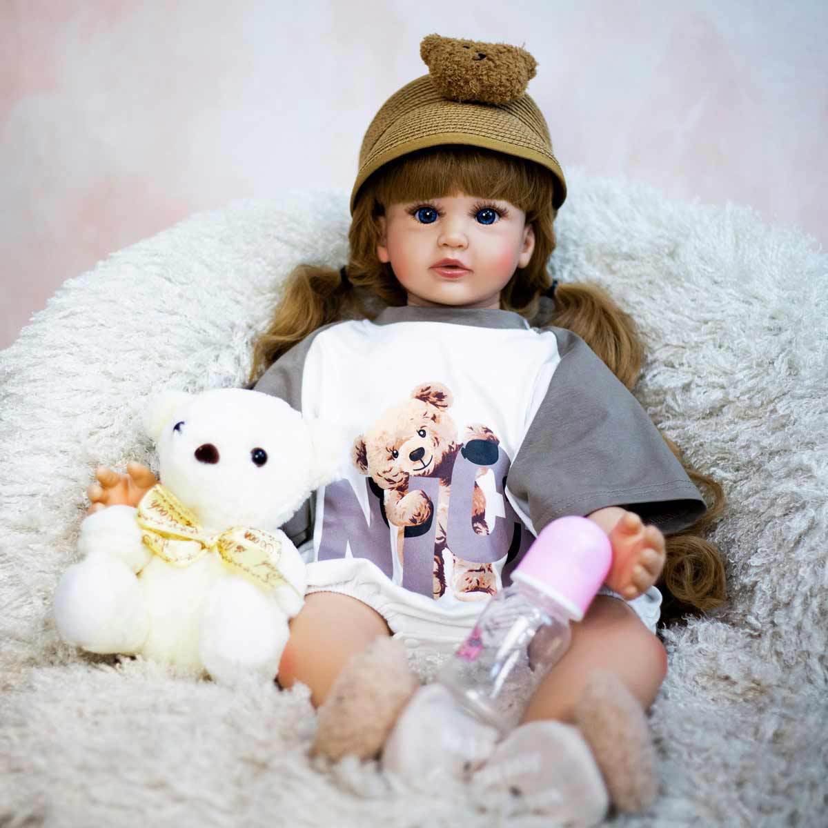 Boneka putri bayi perempuan, perdagangan luar negeri reborn boneka kain 60cm tubuh simulasi vinil rambut keriting emas