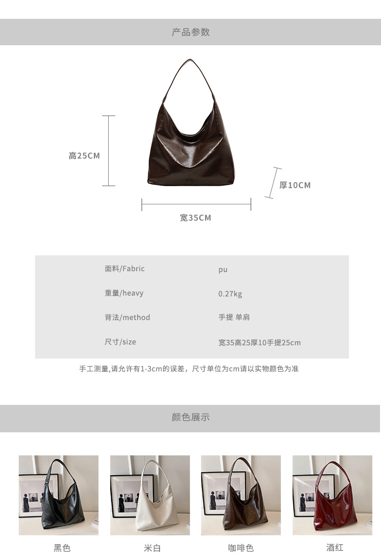 Tas Ketiak Kapasitas Besar Wanita Musim Gugur Baru 2024 Tas Pangsit Serbaguna Tas Selempang Bahu Tunggal Warna Solid Modis.