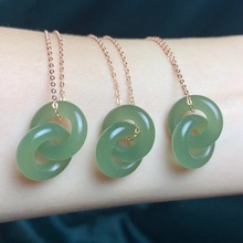 厂家直销 天然和田玉青海料环环相扣锁骨链 S925银女生款项链