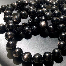 天然水晶黑太阳单圈手串 猫眼带光效应 民族风饰品黑骨干水晶手链