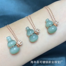天然俄料和田碧玉猫眼葫芦锁骨链吊坠 镶嵌925银时尚简约女生饰品