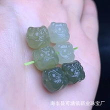 批发天然和田玉青海料【醒狮】横孔 无裂无杂 民族风DIY手链配珠