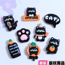 可爱黑小猫卡通diy小饰品奶油胶配饰树脂配件创意鞋扣发夹材料
