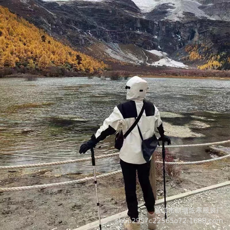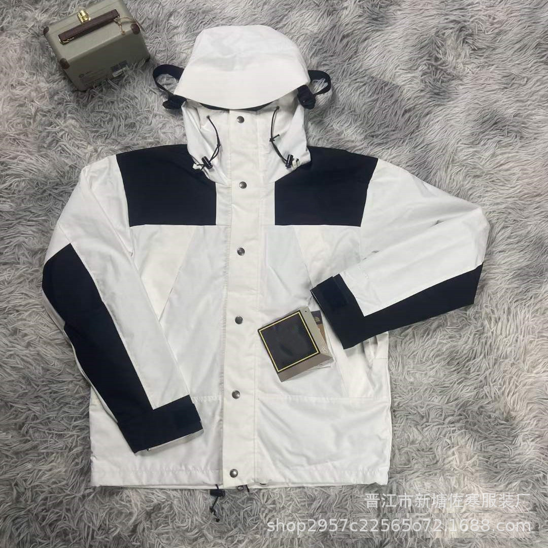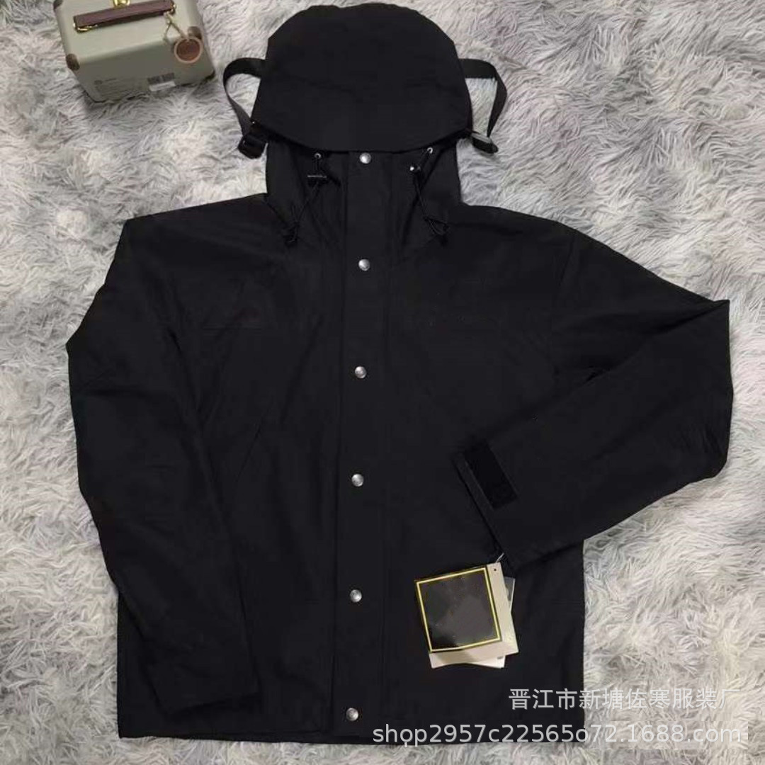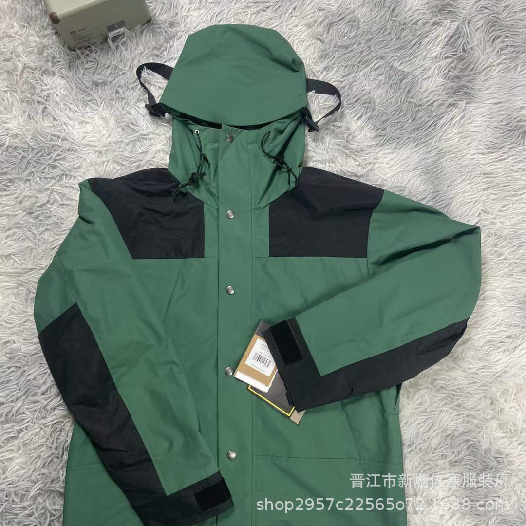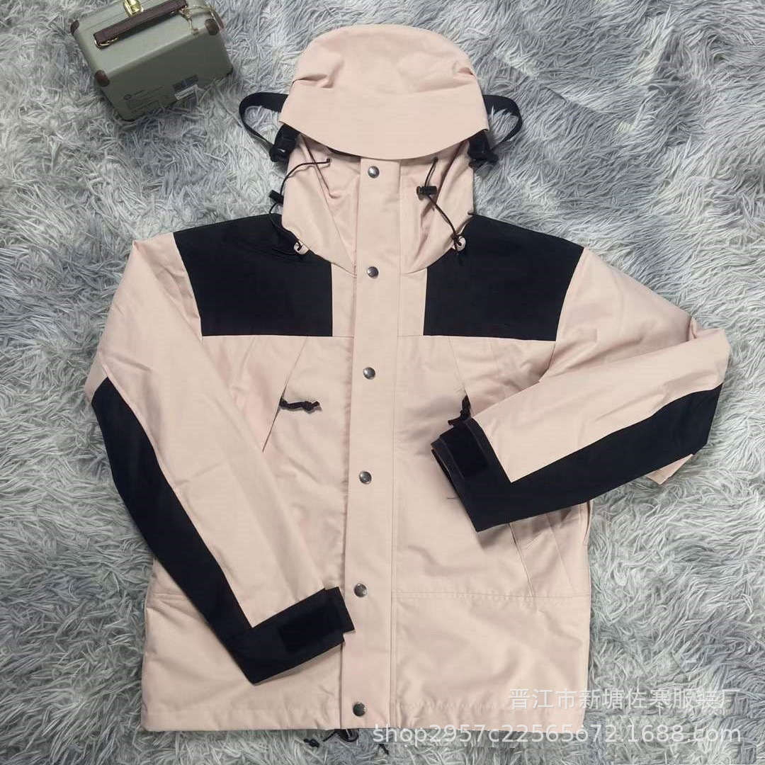 Jaket pasangan, jaket gaya Amerika pria dan wanita 1990 untuk mendaki gunung luar ruangan tahan angin tahan air tnf North Face bertudung