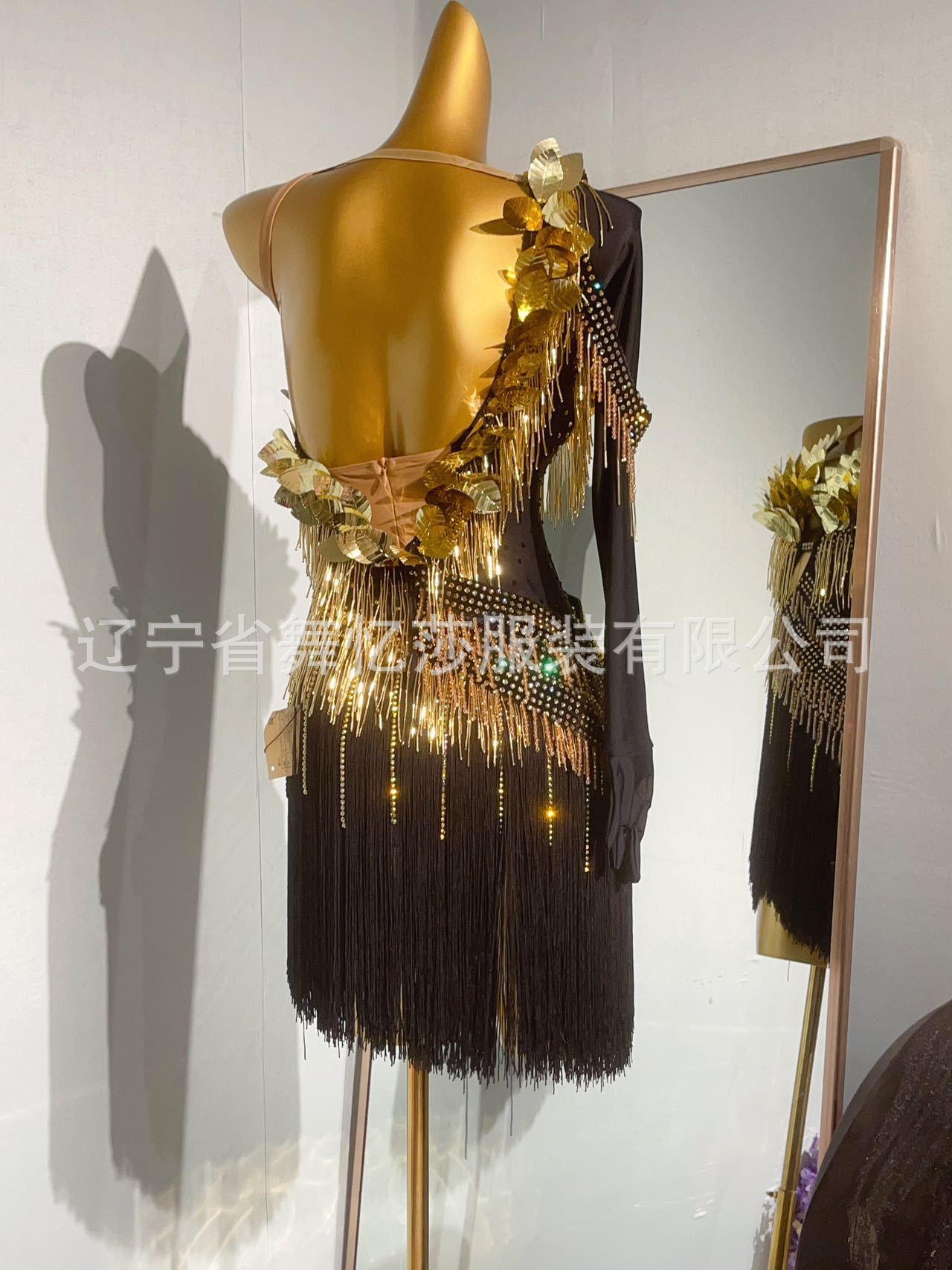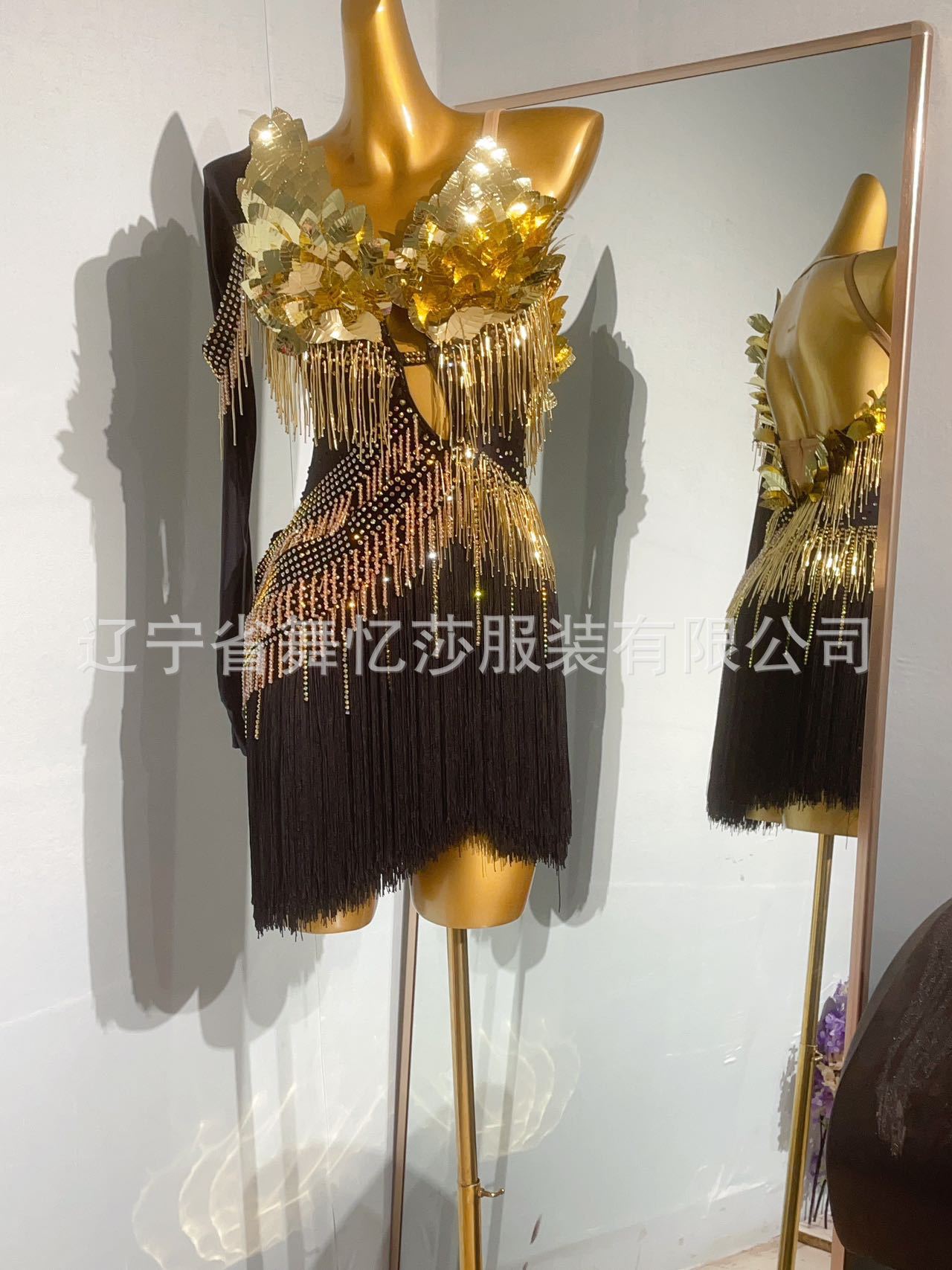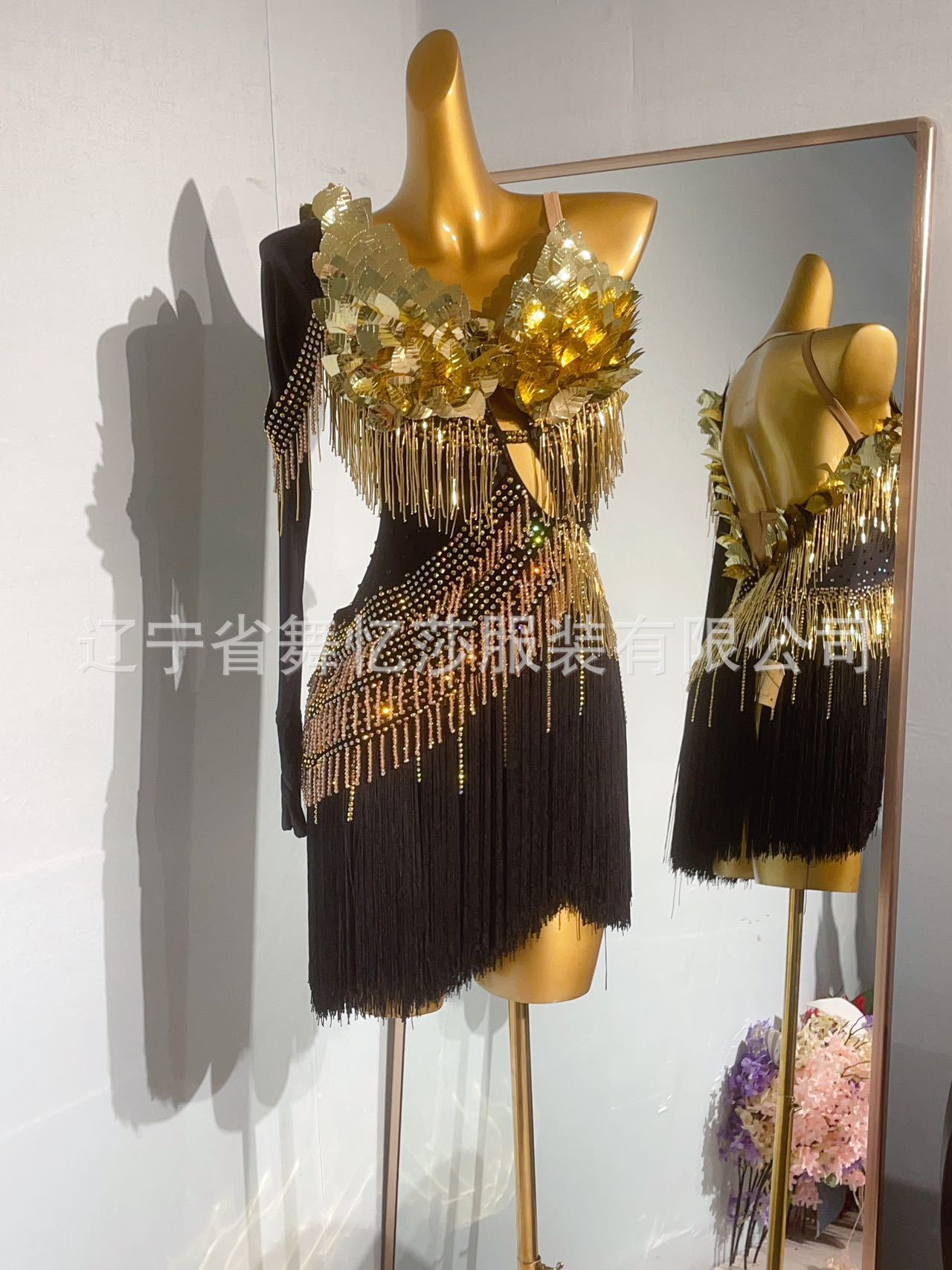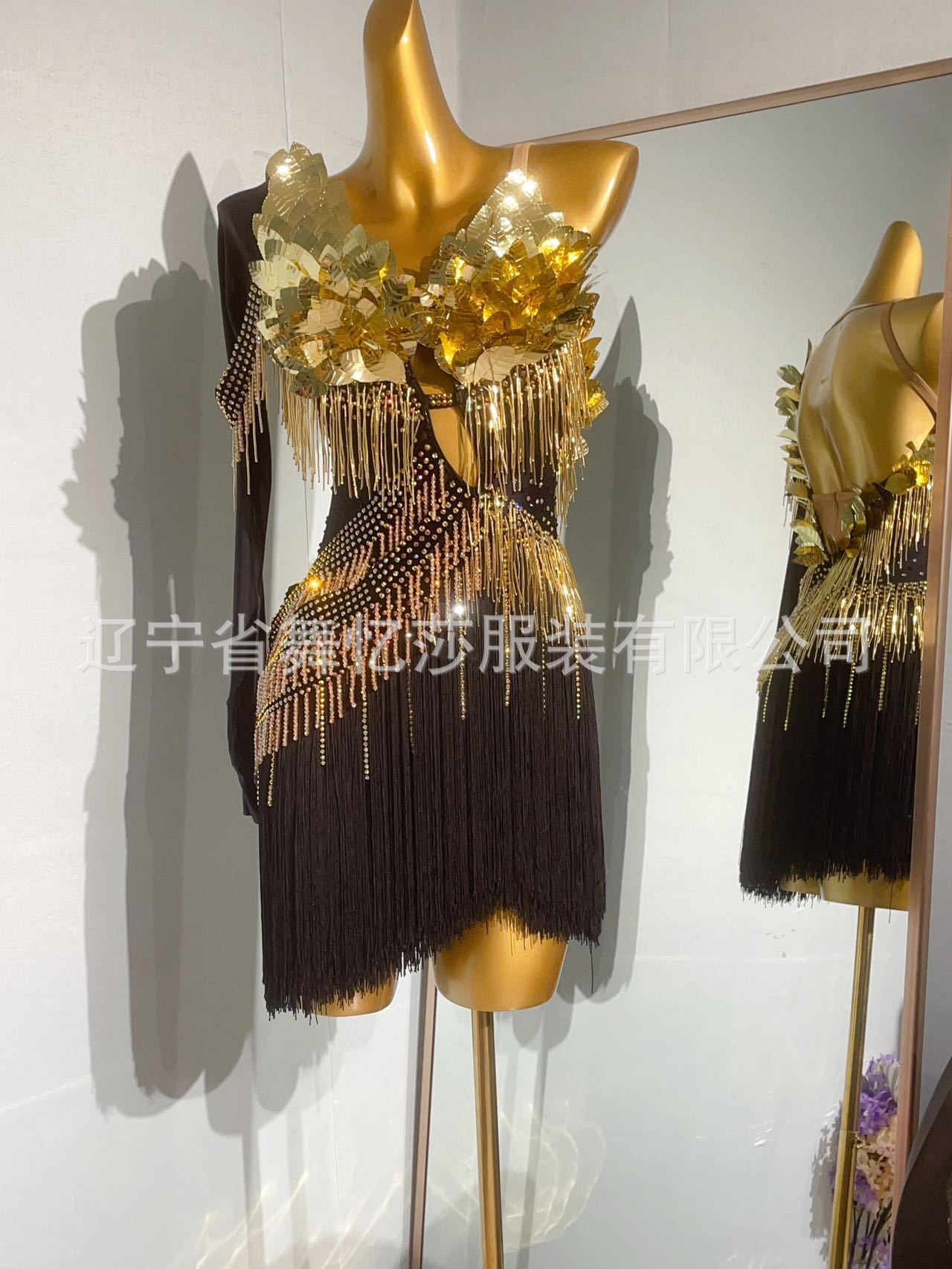 Kostum pertunjukan gaun tari Latin lintas batas untuk wanita, gaun tari kompetisi profesional, gaun rumbai seksi untuk pertunjukan kelompok dewasa.