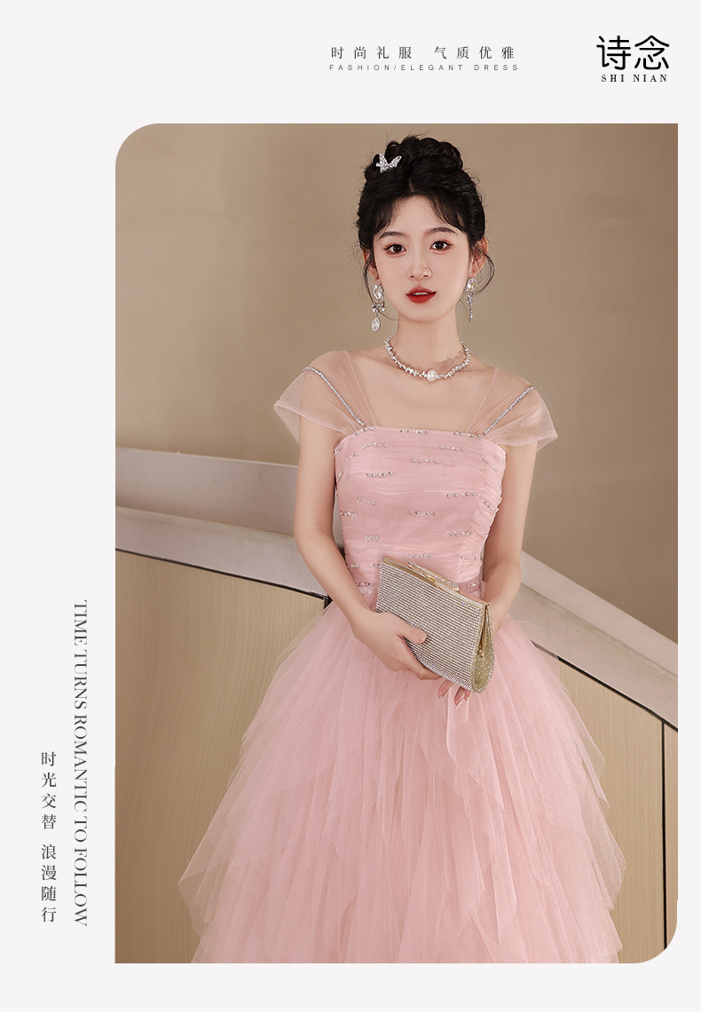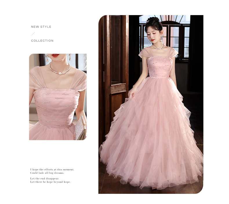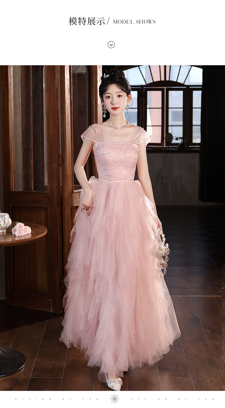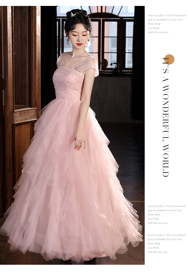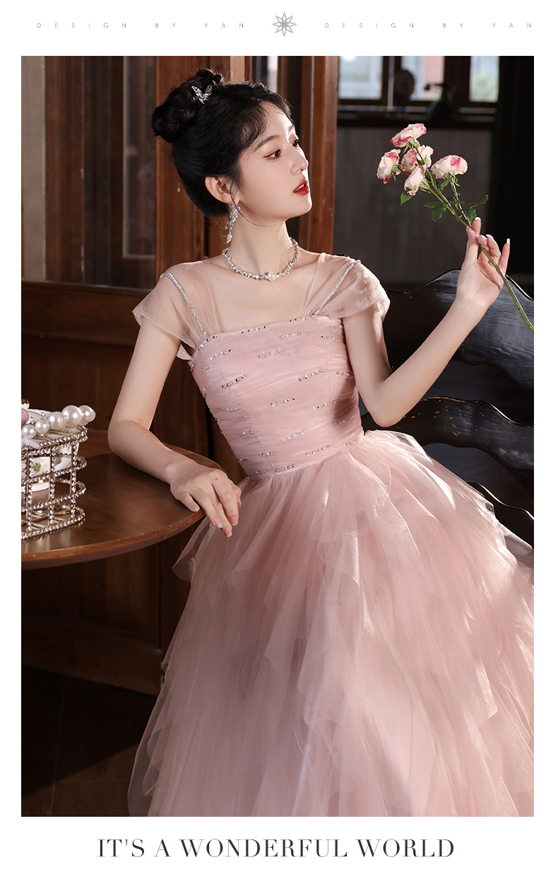 Gaun malam wanita lampu perjamuan mewah niche high-end merah muda host siswa gaun peri wisuda hadiah dewasa