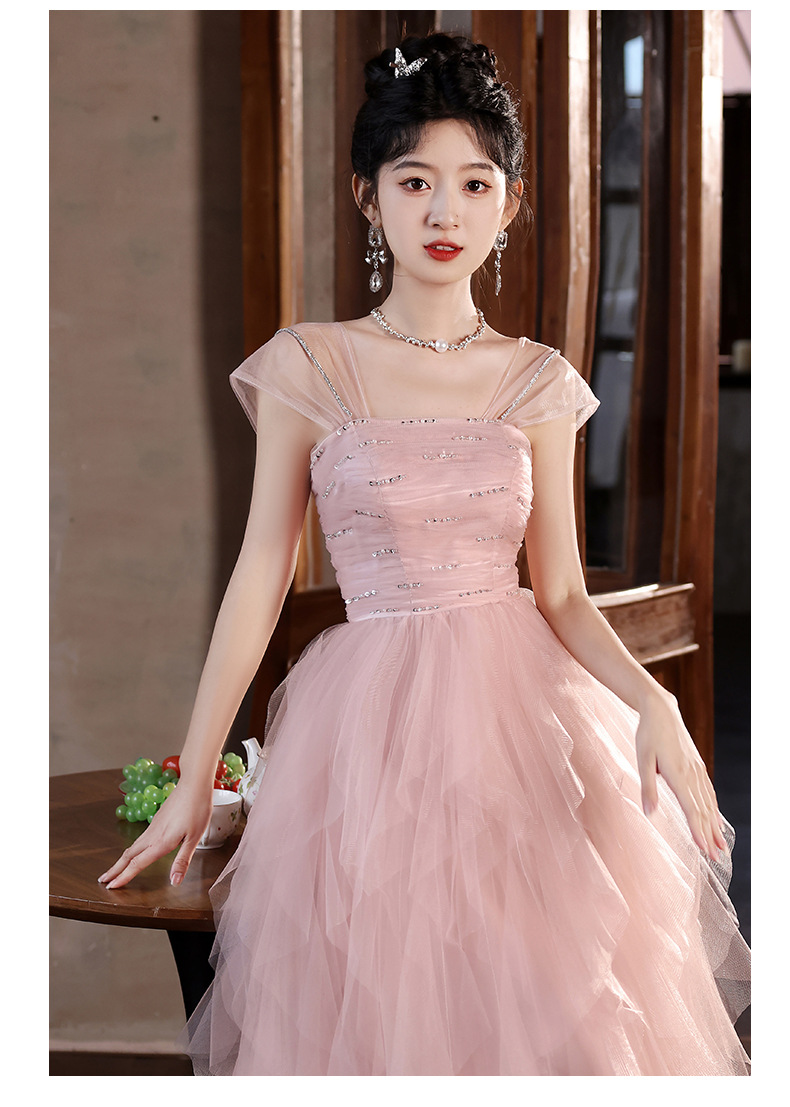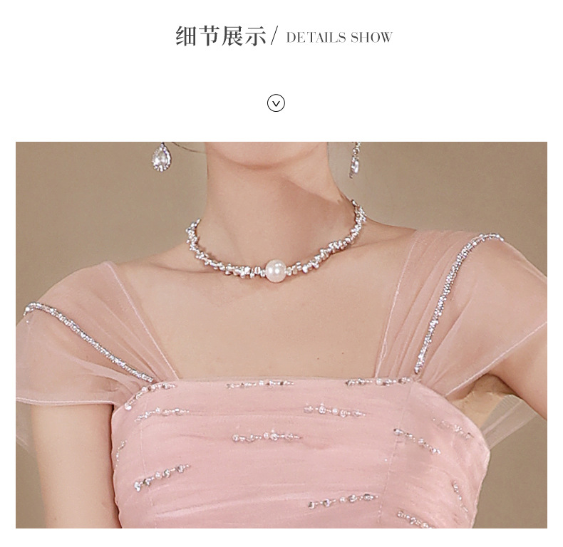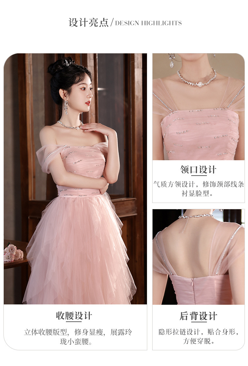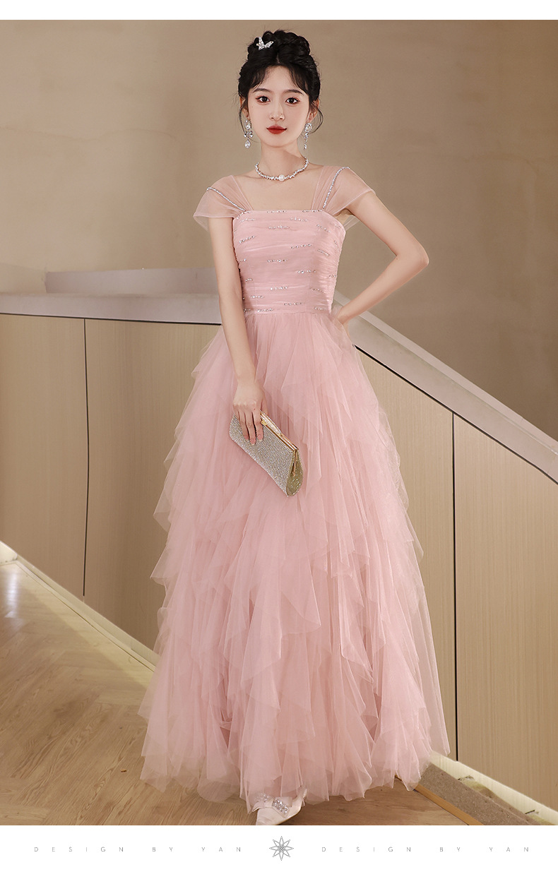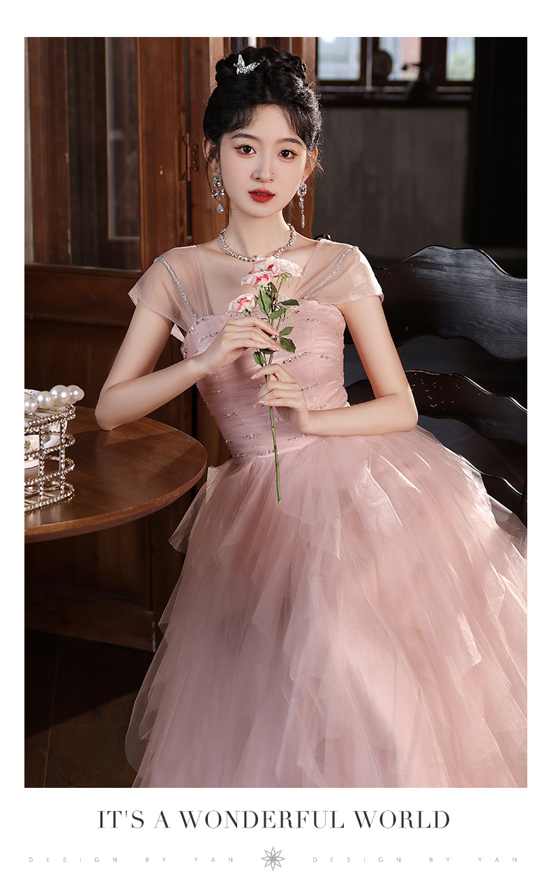 Gaun malam wanita lampu perjamuan mewah niche high-end merah muda host siswa gaun peri wisuda hadiah dewasa