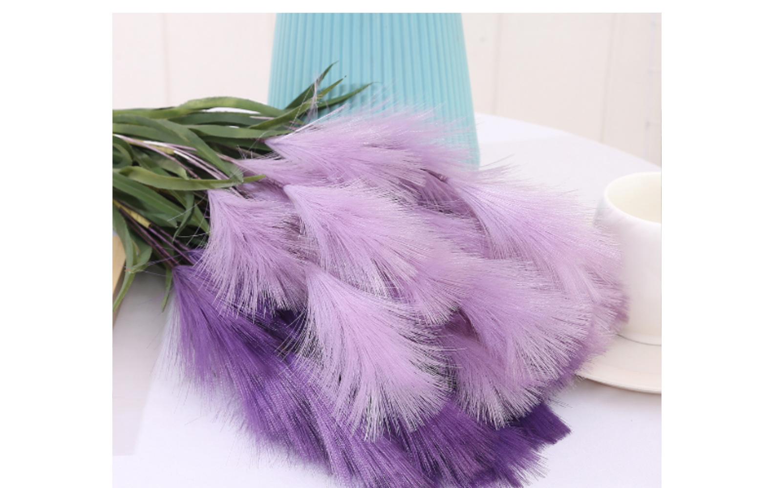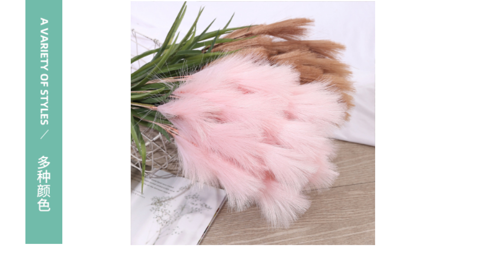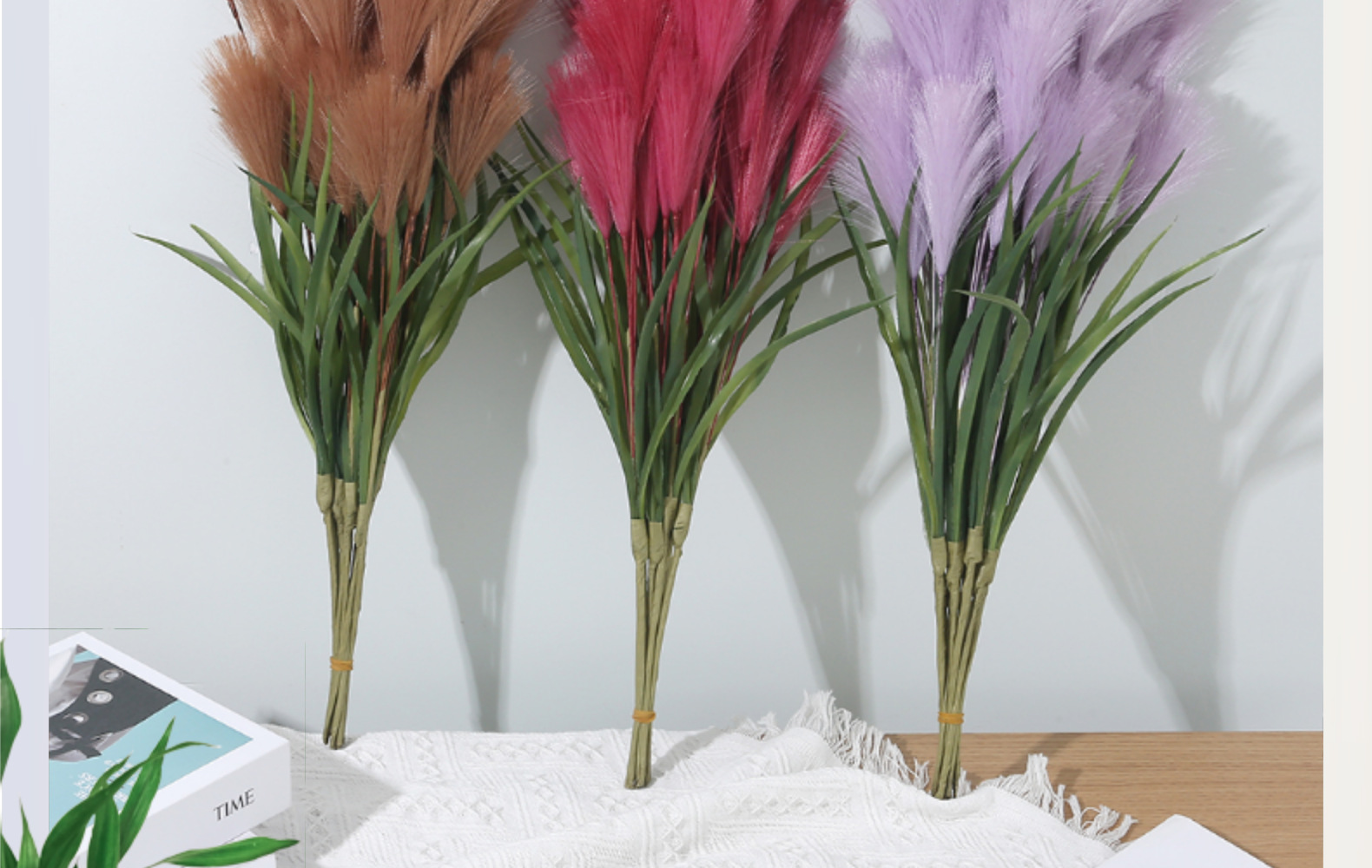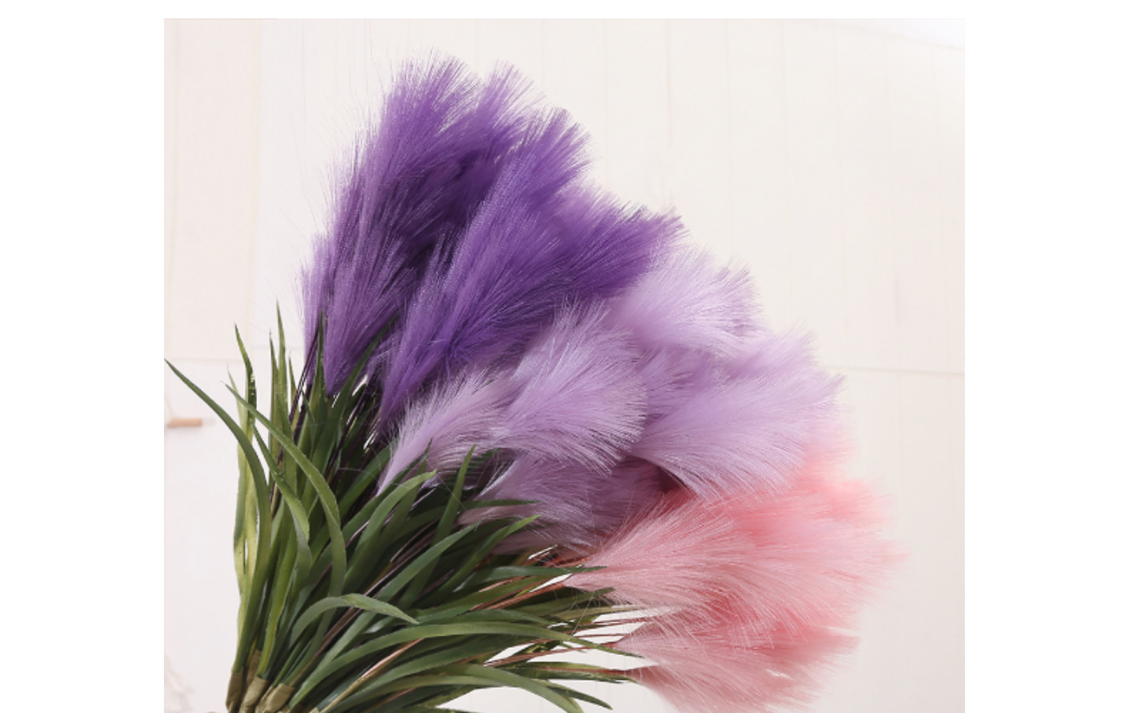 Bunga buatan, buluh buatan, bulu palsu, dekorasi pernikahan dan rumah bergaya Nordik, rumput pampas warna-warni.