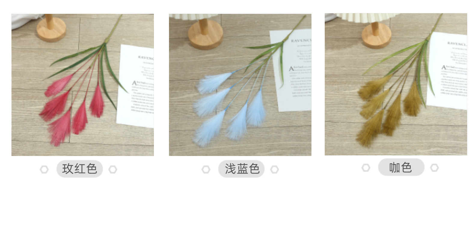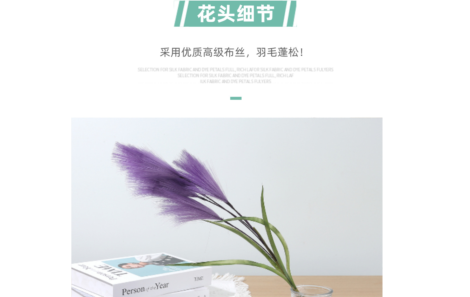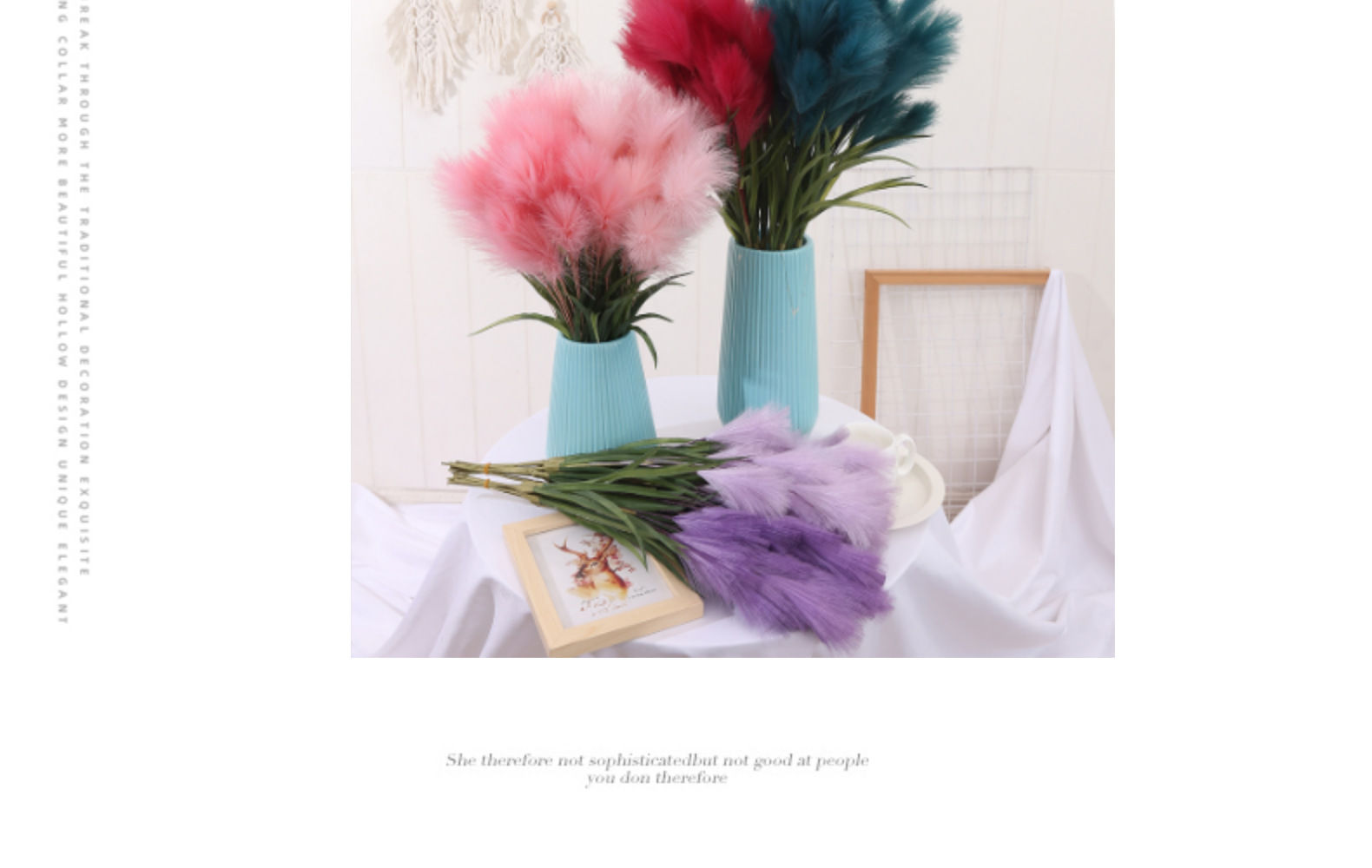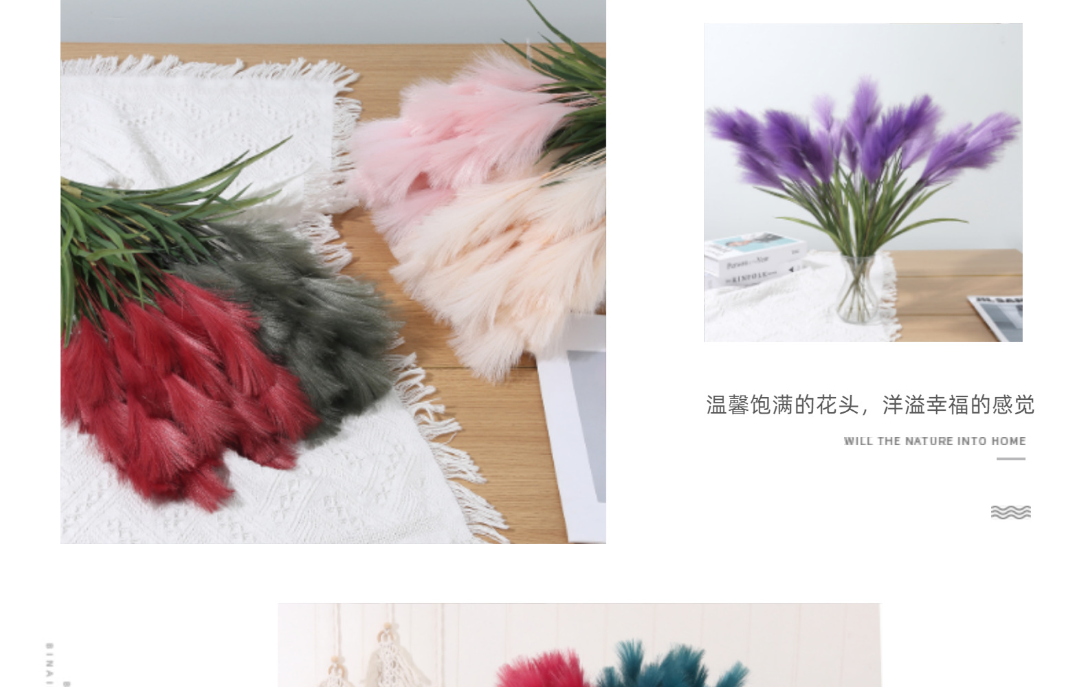 Bunga buatan, buluh buatan, bulu palsu, dekorasi pernikahan dan rumah bergaya Nordik, rumput pampas warna-warni.