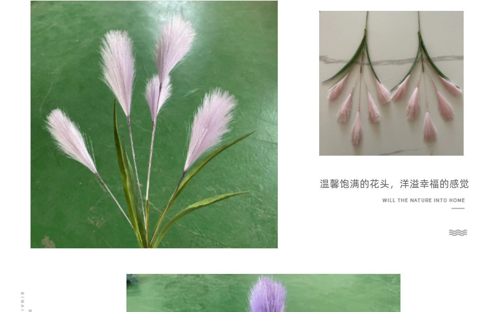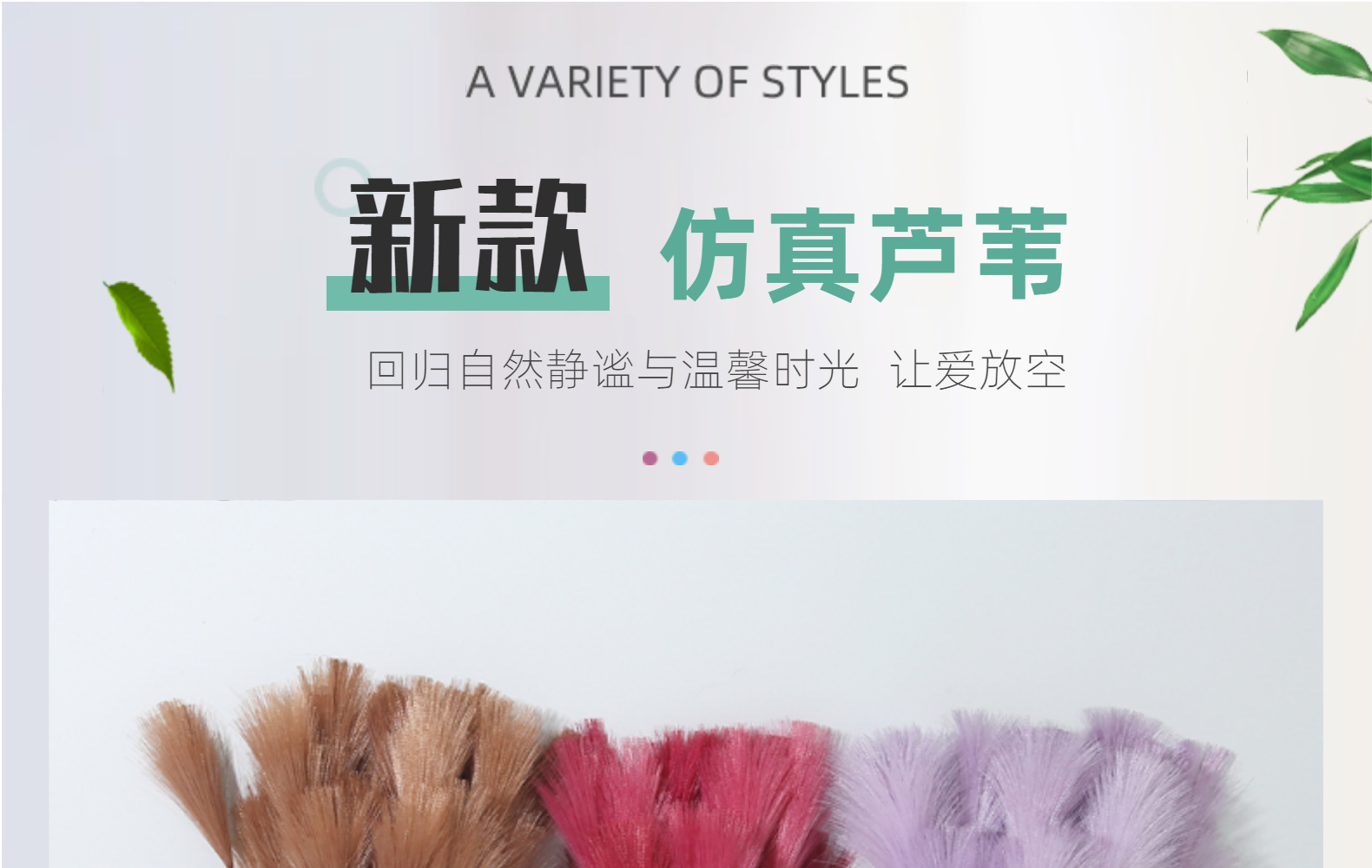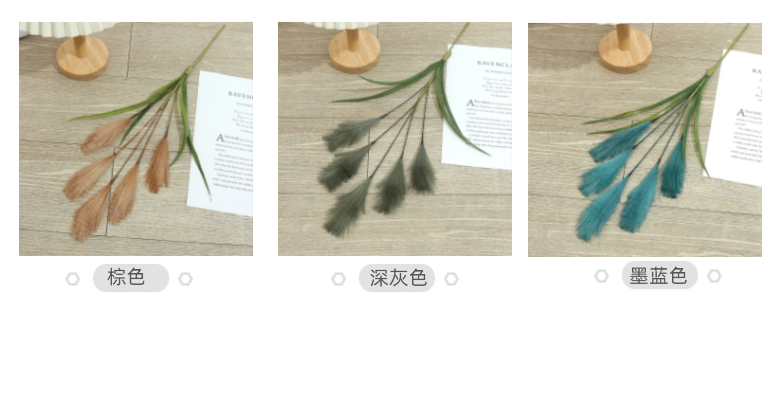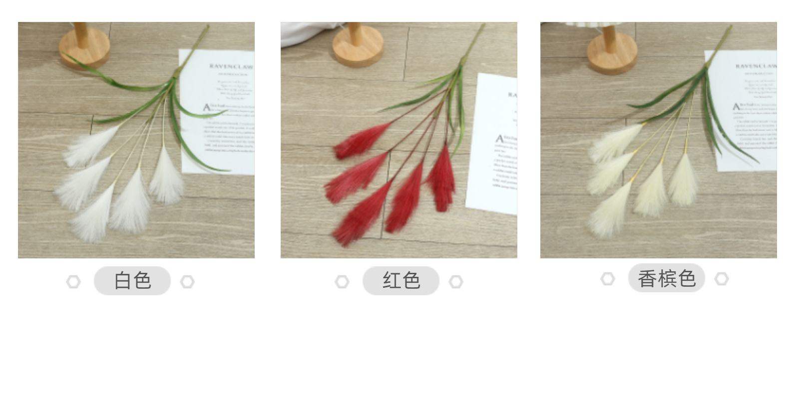 Bunga buatan, buluh buatan, bulu palsu, dekorasi pernikahan dan rumah bergaya Nordik, rumput pampas warna-warni.