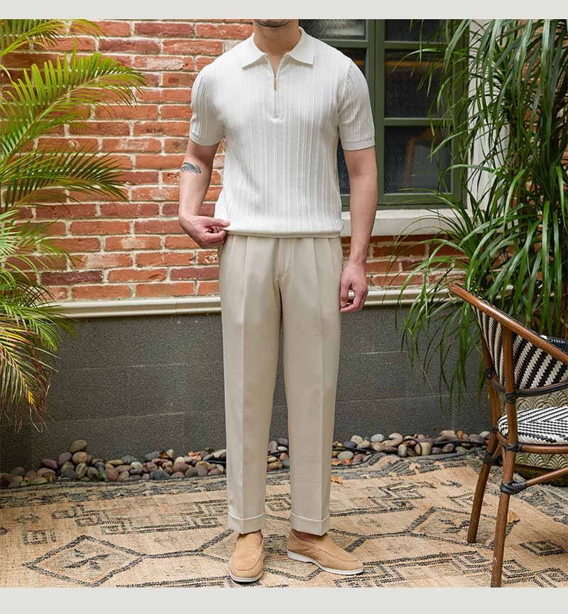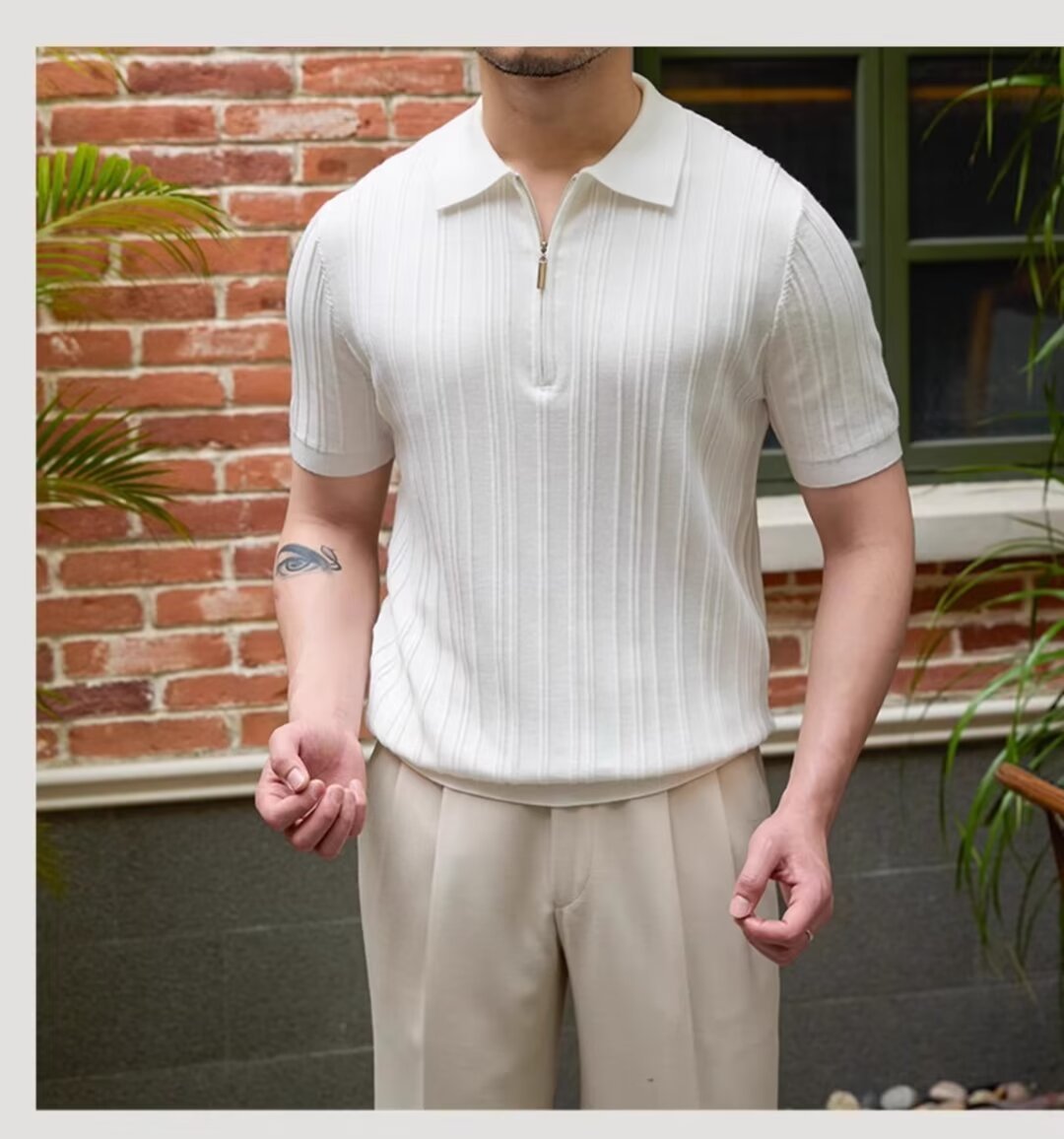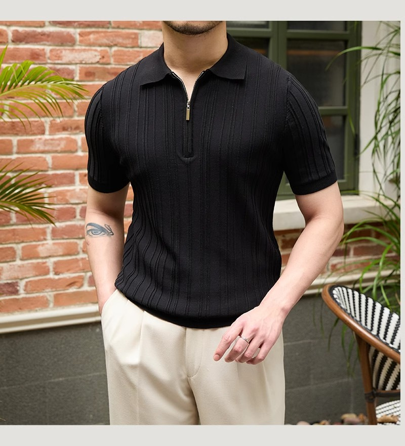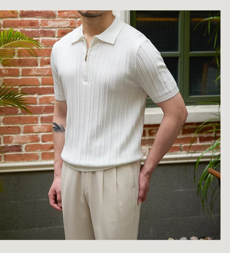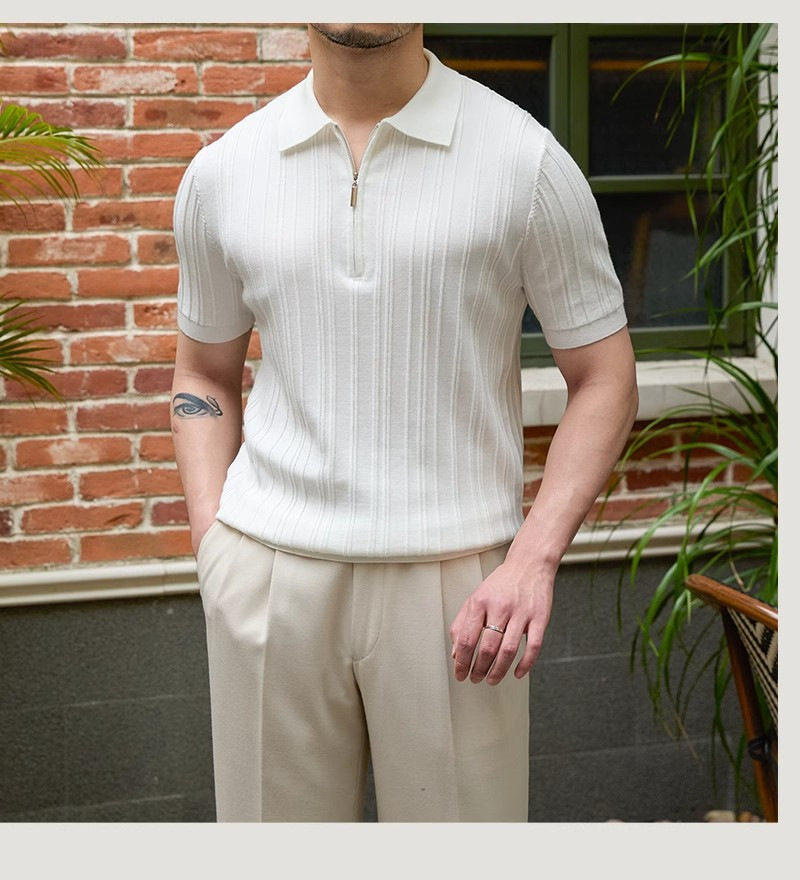 Kaos polo rajutan lengan pendek pria, kemeja Dalaman lengan setengah kerah sutra es warna polos slim-fit musim panas