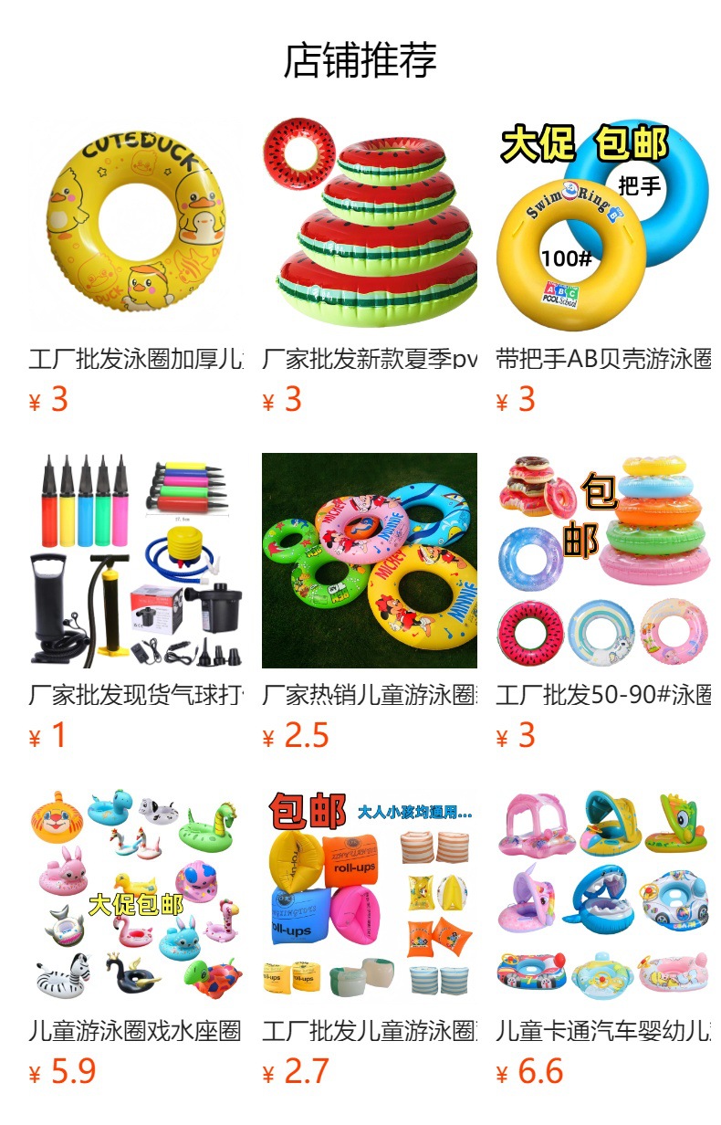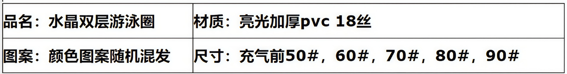 注意:文中说的泳圈尺寸是指厂里的产品模具尺寸,实物做出来因为还要做去除毛边再包边等工序,所以实际的游泳圈尺寸,是会偏小一些的。。。。