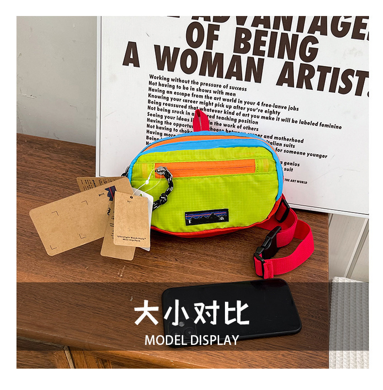 Tas Pinggang Kecil Mini Tahan Air Mini Luar Ruangan Pria Wanita Merek Trendi Tas Ponsel Warna Kombinasi Mudah Dipadu Padan Pelajar Tas Dada Komuter