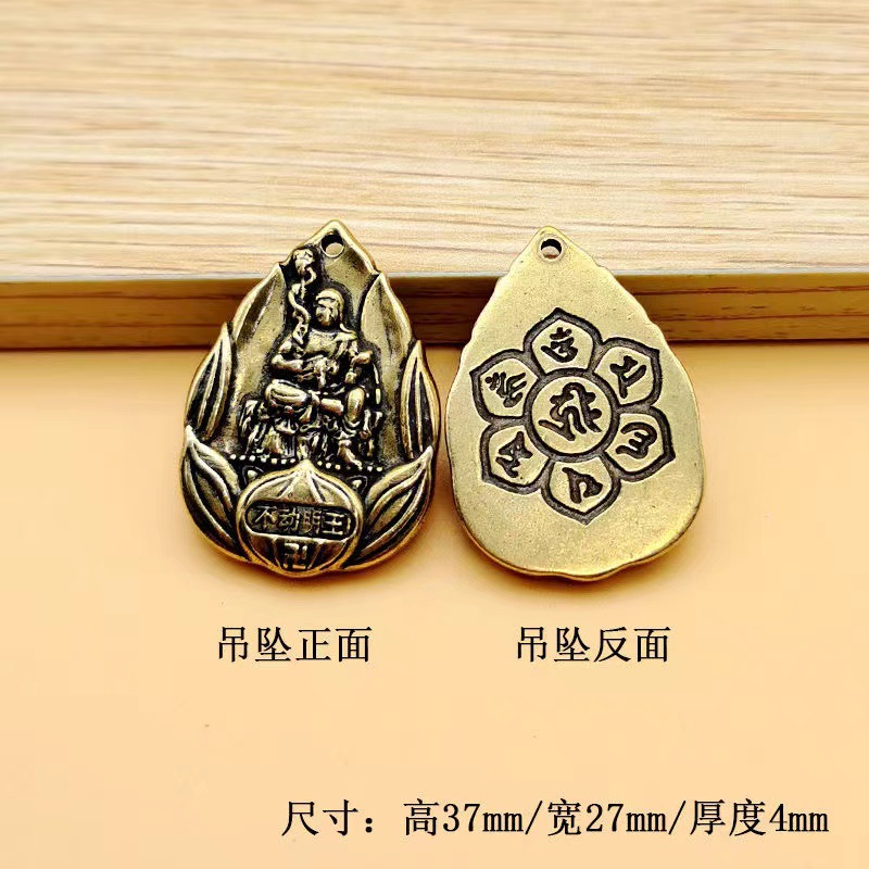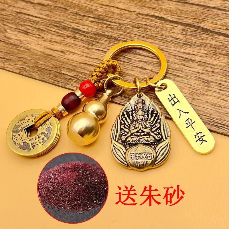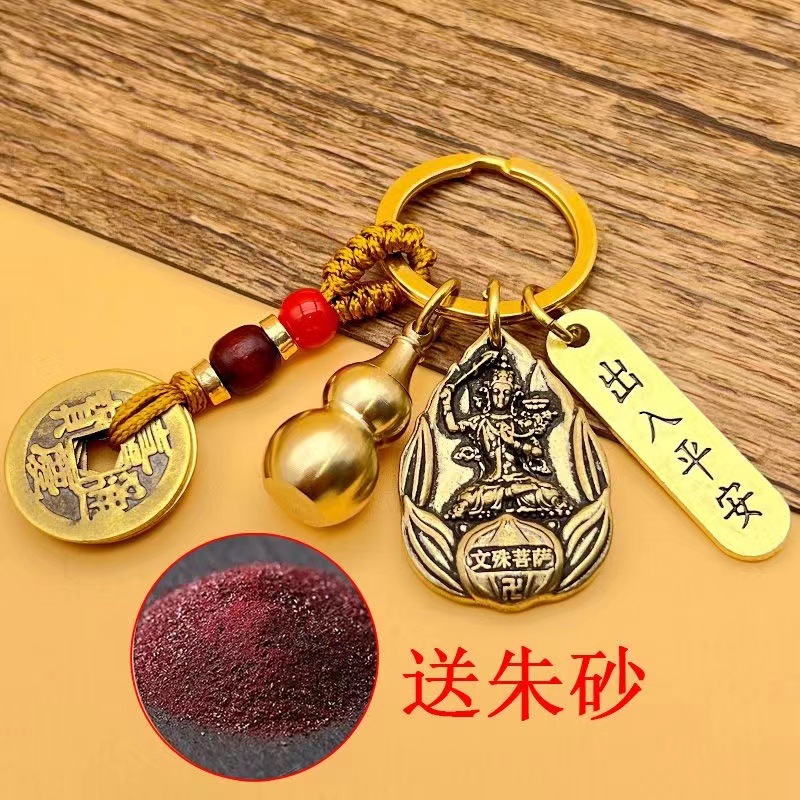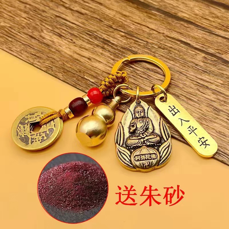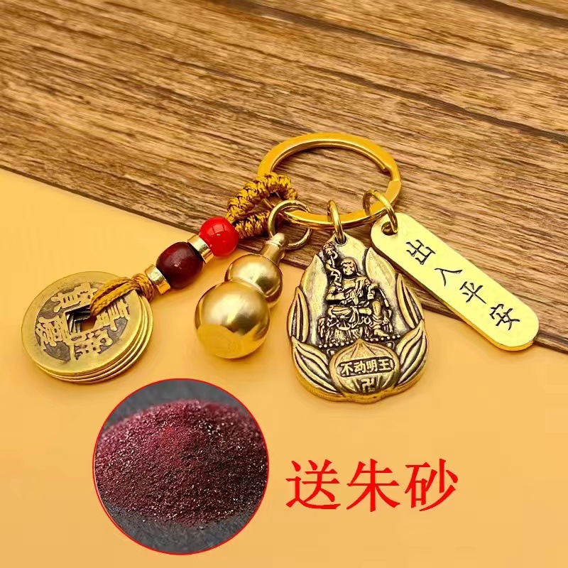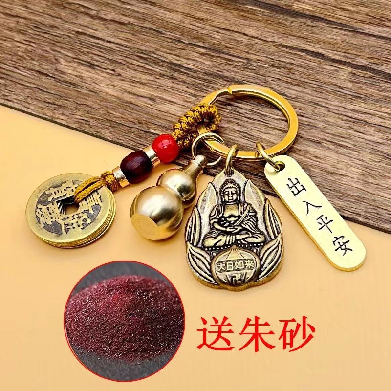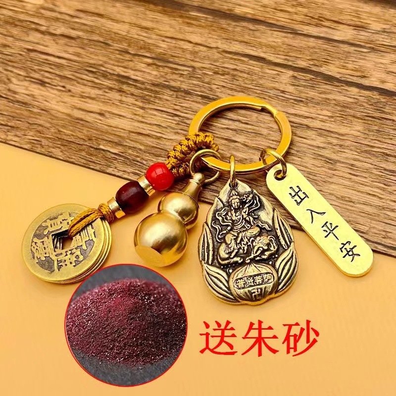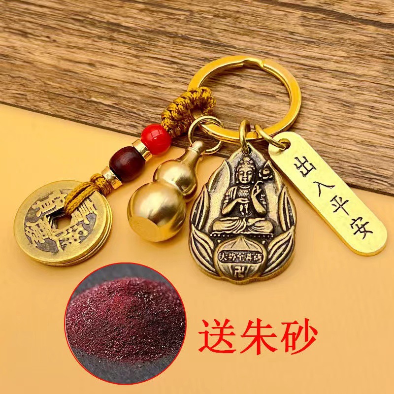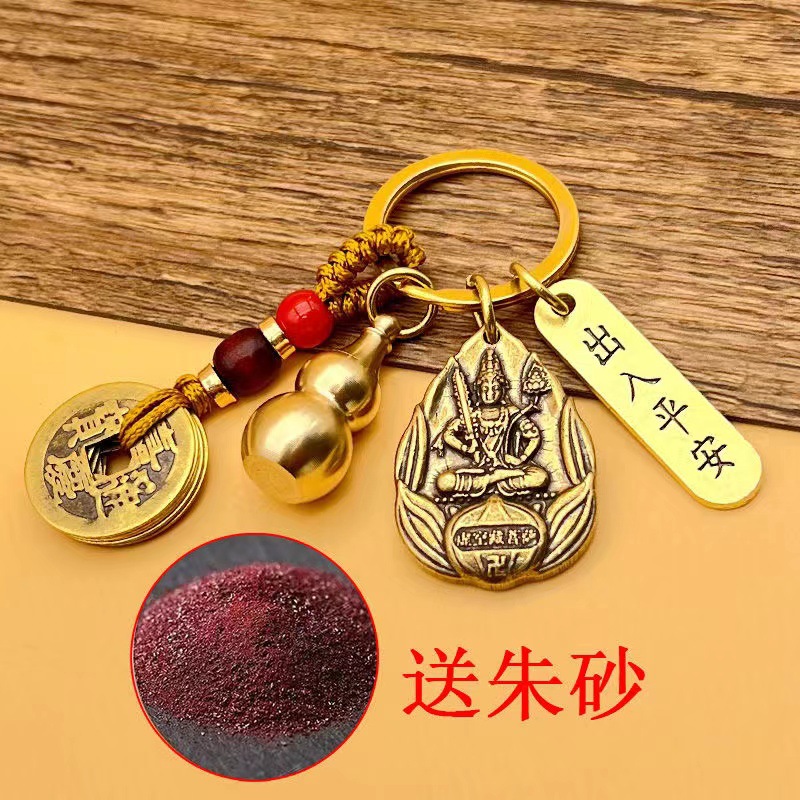 Kuningan murni dua belas zodiak Buddha penjaga dewa gantungan kunci mobil liontin Keberuntungan Lima Kaisar uang cinnabar tembaga labu