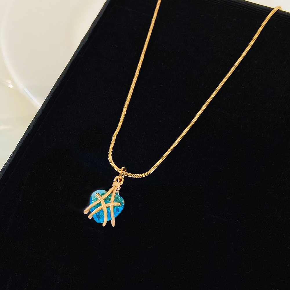 Barbie kalung berlian istana cinta wanita, kalung pasangan klavikula bentuk hati manis modis