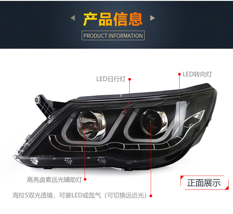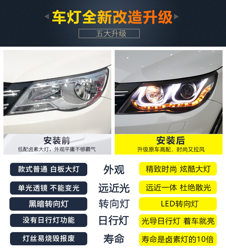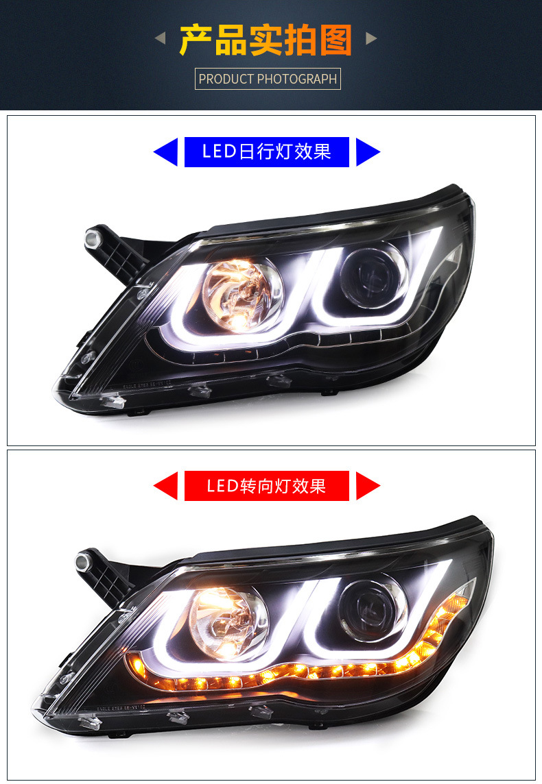 Cocok untuk perakitan lampu depan Tiguan tua modifikasi lampu LED khusus lampu siang hari 10-12 lensa sinyal belok rendah
