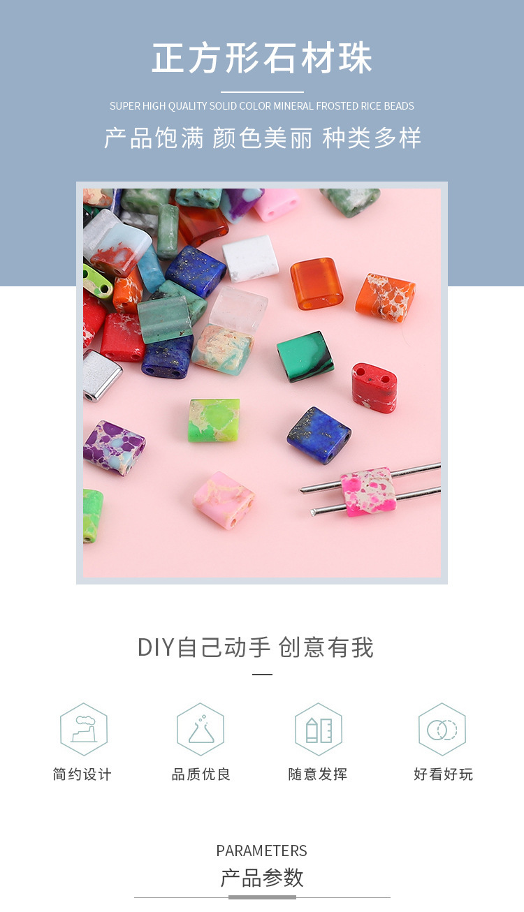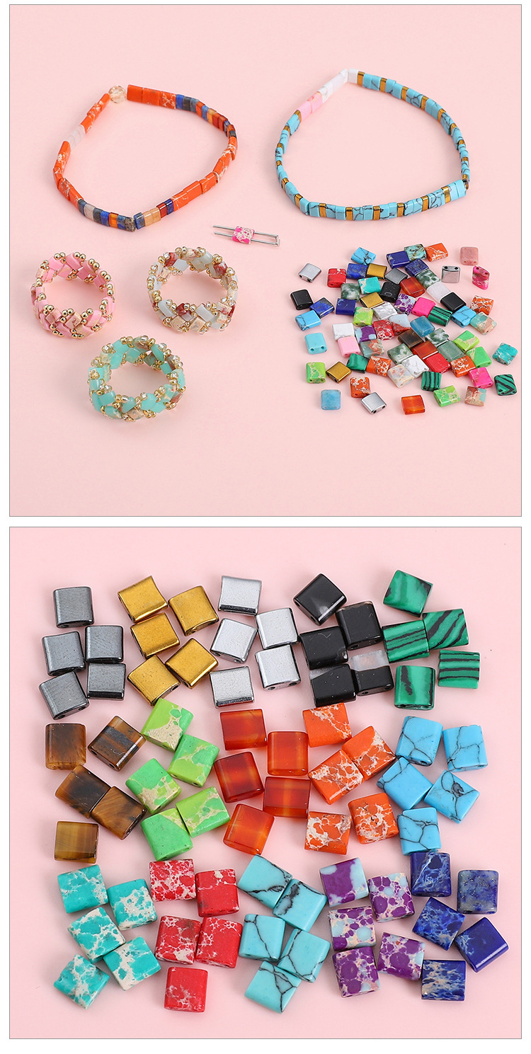 Gall Batu kaisar hitam batu persegi lubang ganda manik-manik longgar diy buatan tangan gelang manik-manik aksesori perhiasan kalung