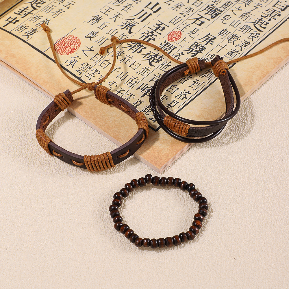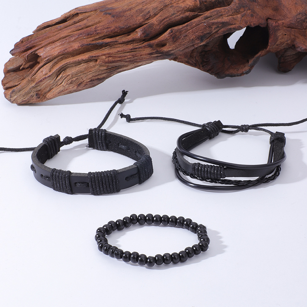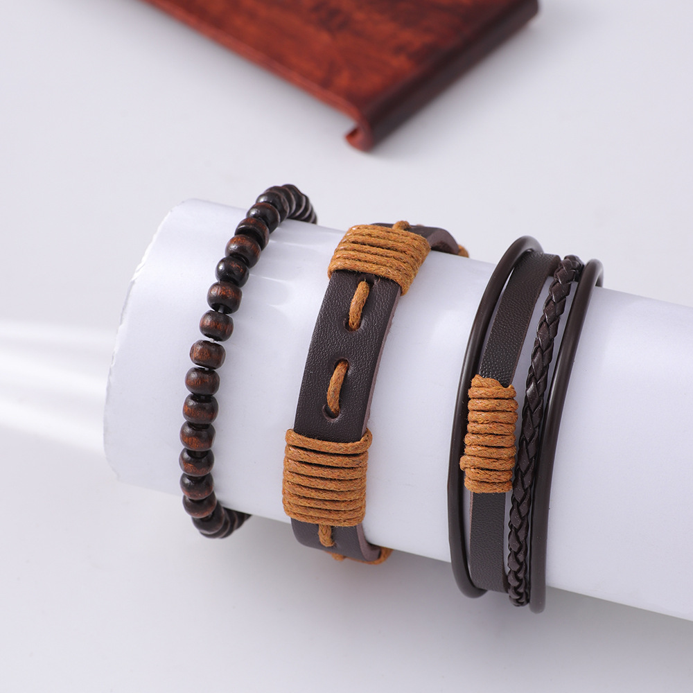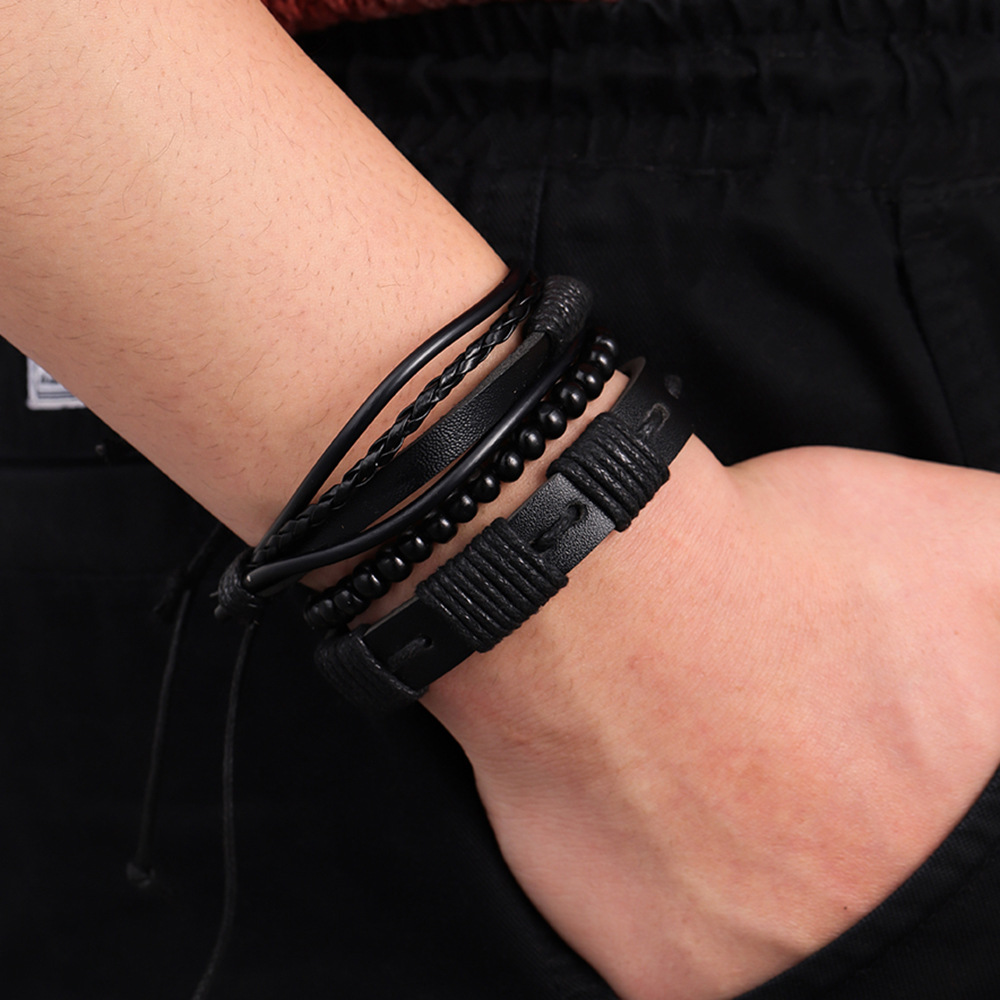 Gelang kulit pria, lintas batas, penjualan laris, gelang kulit multi-lapisan, perhiasan kulit gelang pria tenunan tangan mode retro diy