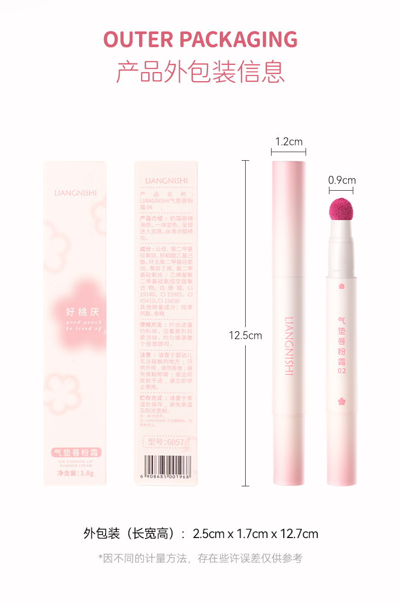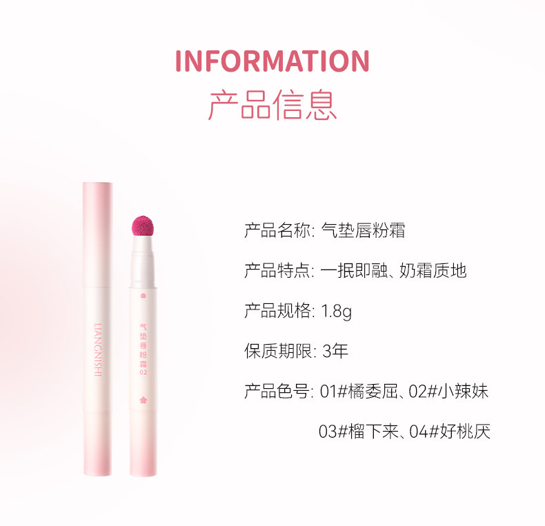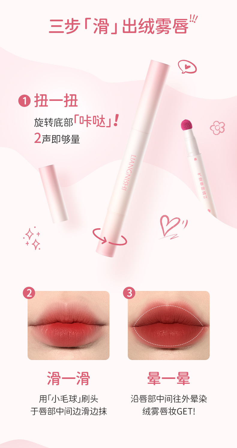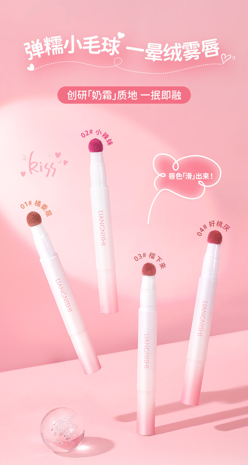 Produk Baru Liang Ni Shi Krim Bibir Bantalan Udara Lip Gloss Kabut Matte Lipgloss Musim Gugur dan Musim Dingin Putih
