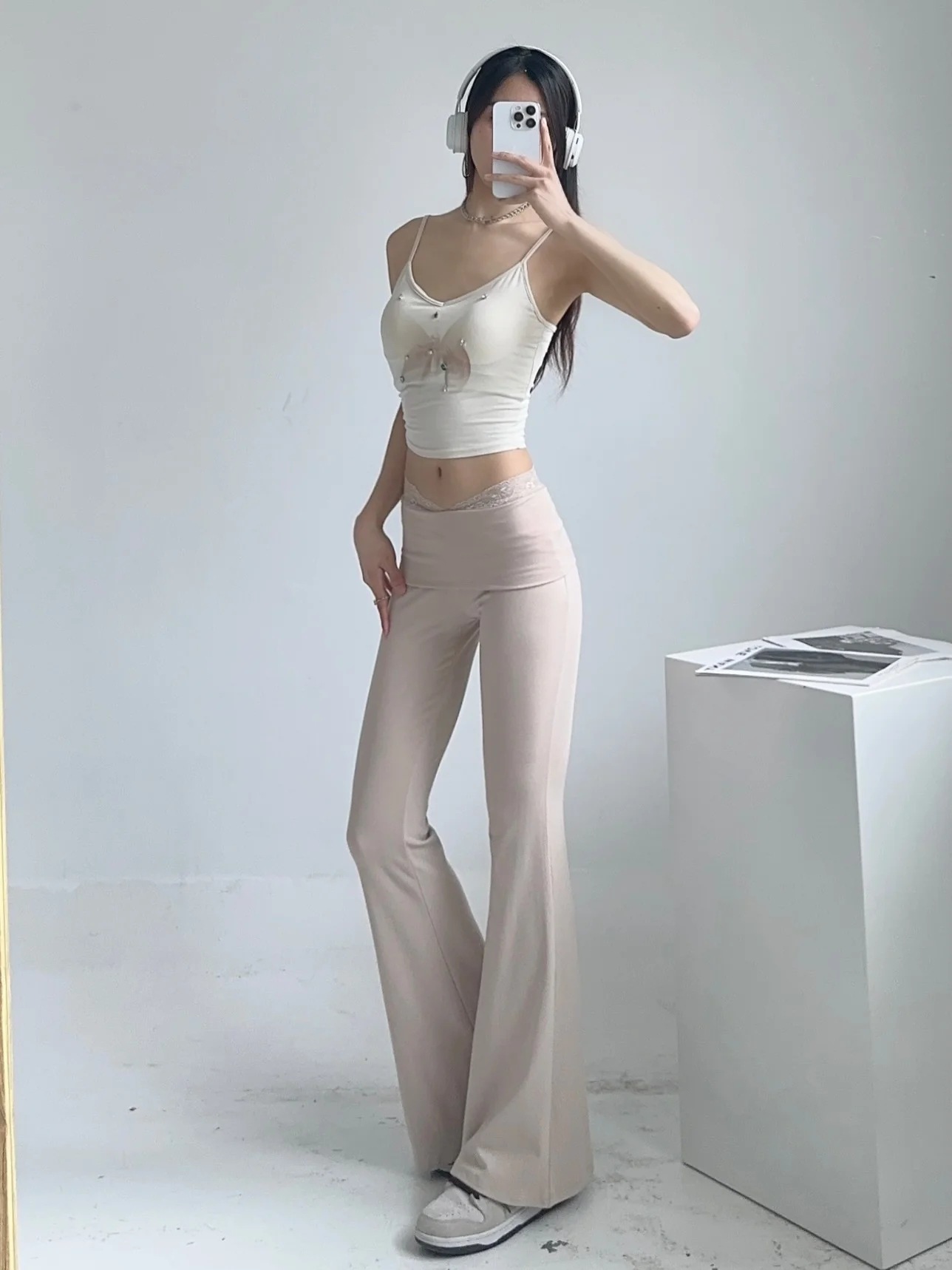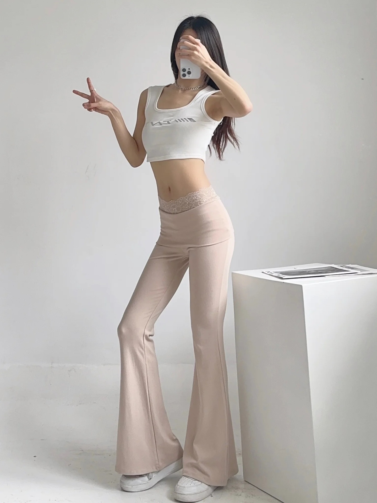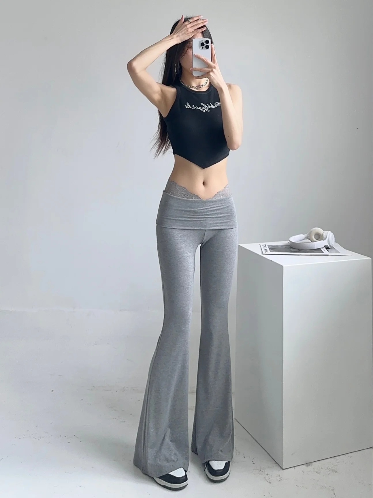 Celana legging wanita, celana fitness yoga kasual, ketat pelangsing ramping pinggang tinggi, renda reguler musim panas