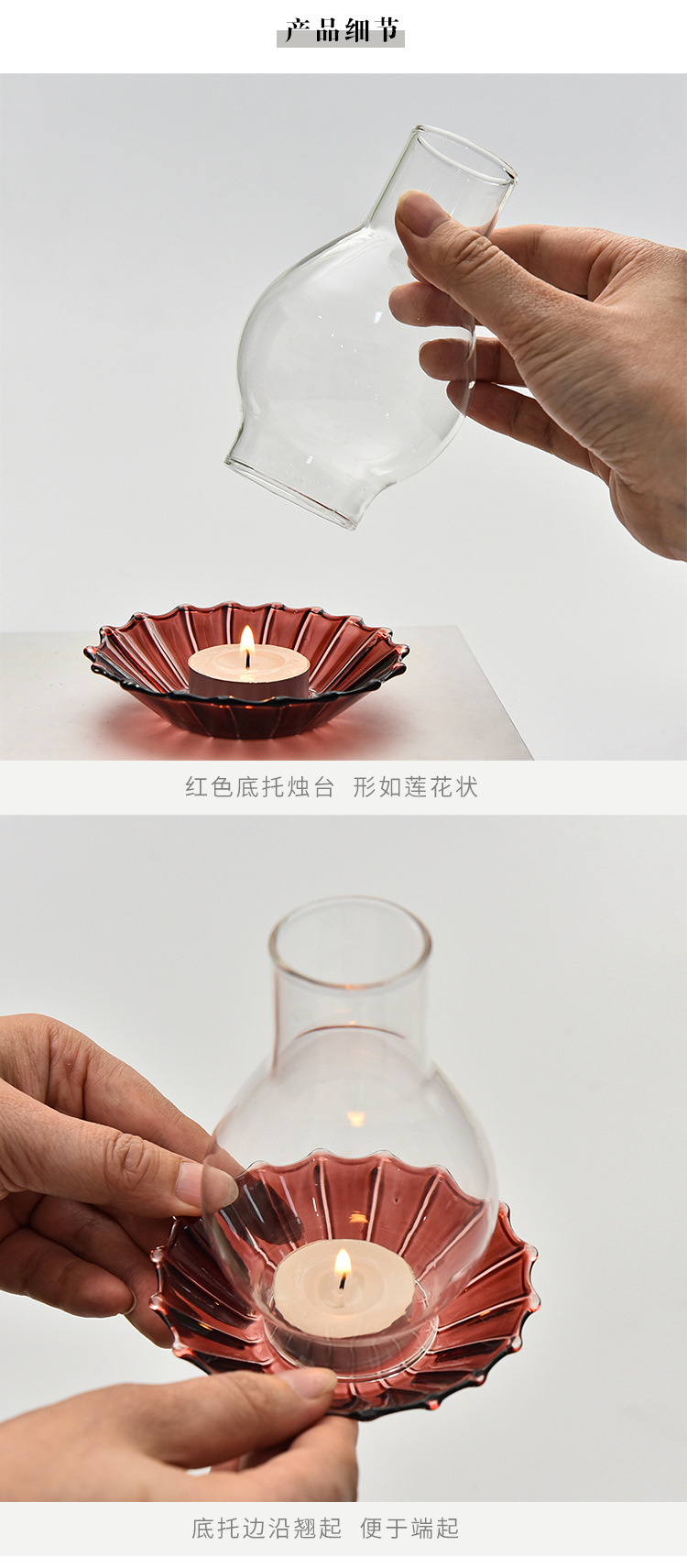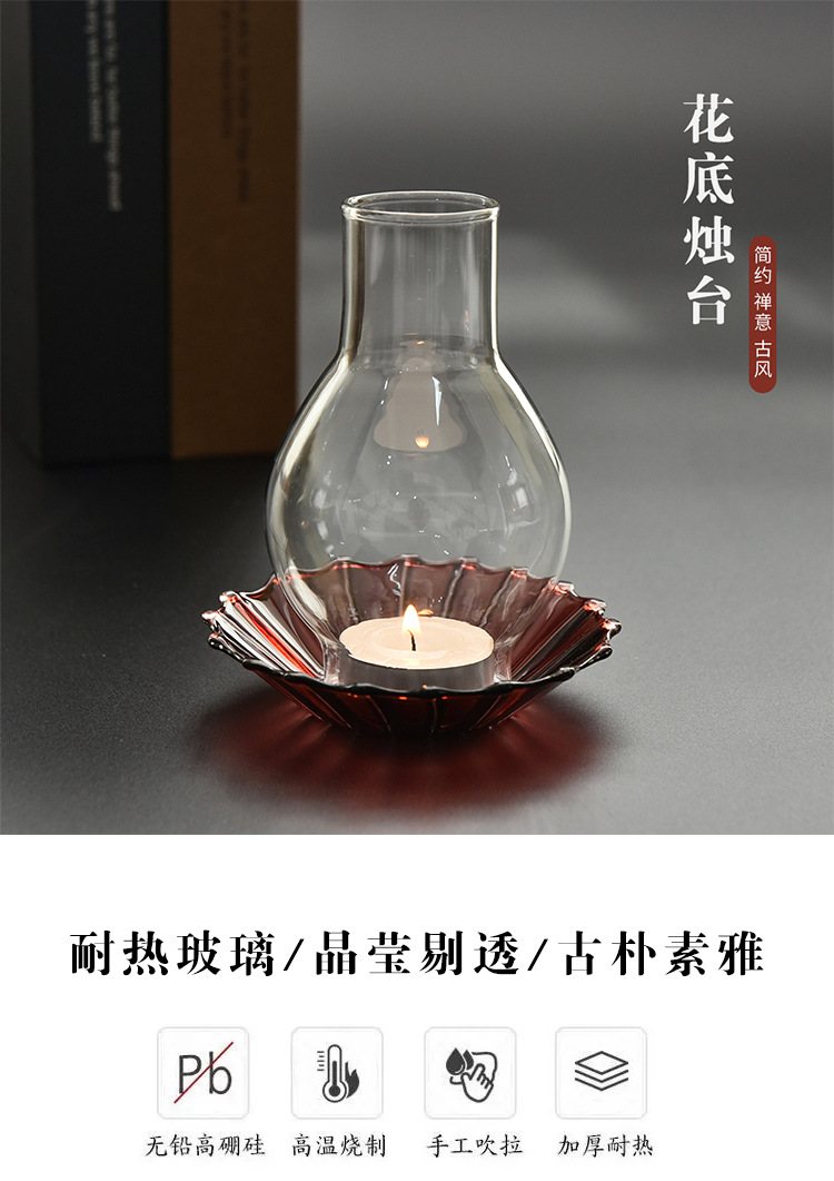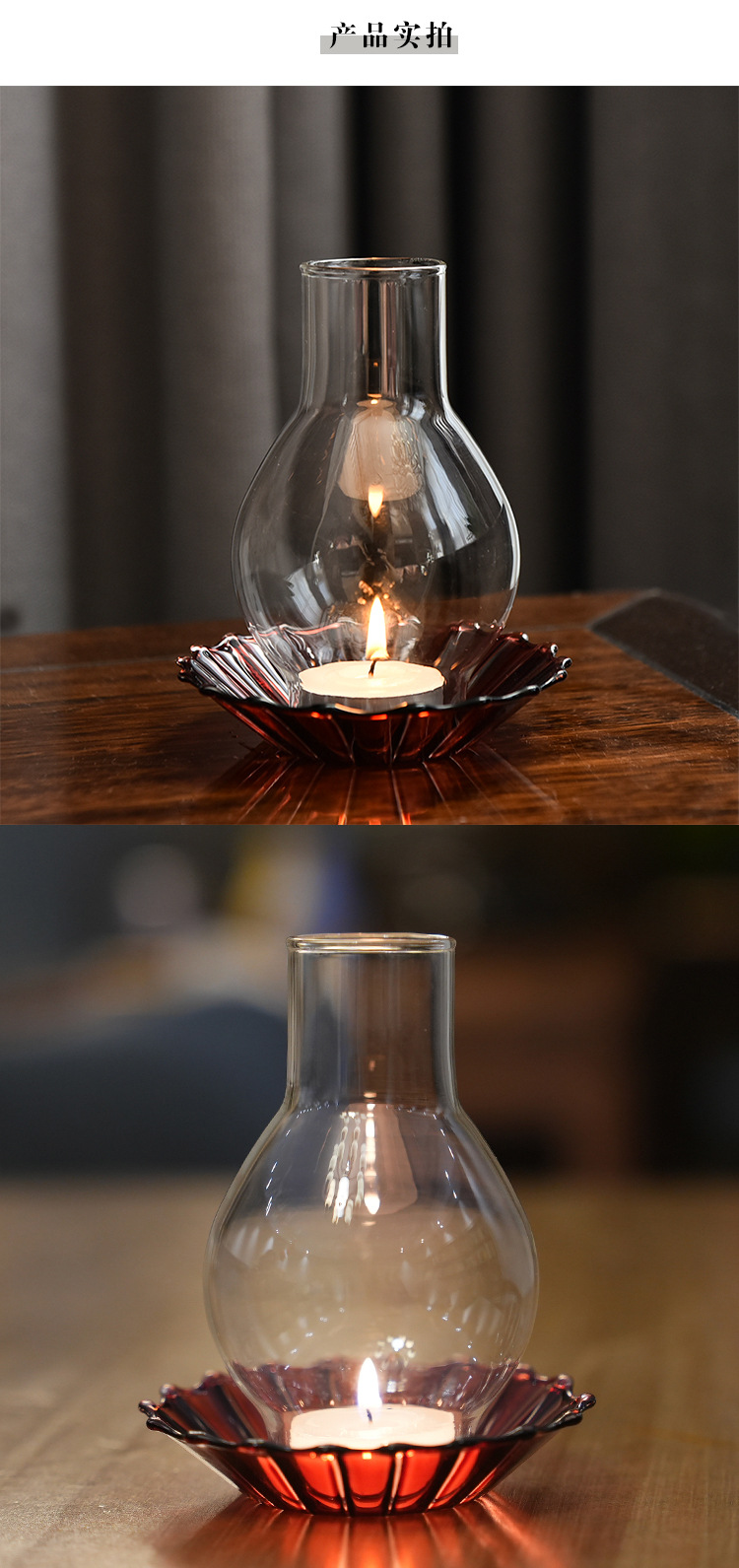 Zen glass tempat lilin rumah tangga, tempat lilin tahan angin retro sederhana baru dekorasi gaya China