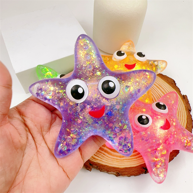跨境新款麦芽糖捏捏乐海星解压神器慢回弹极光闪光亮片金粉发泄球