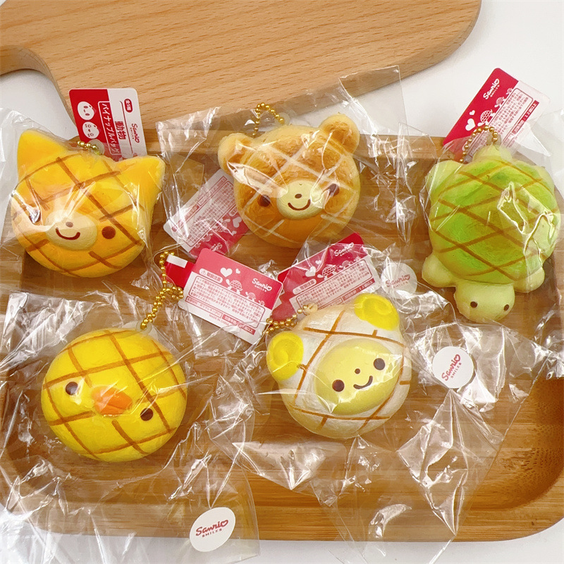 日本食玩正品迷你动物仿真菠萝包面包慢回弹吊坠松软送礼挂件