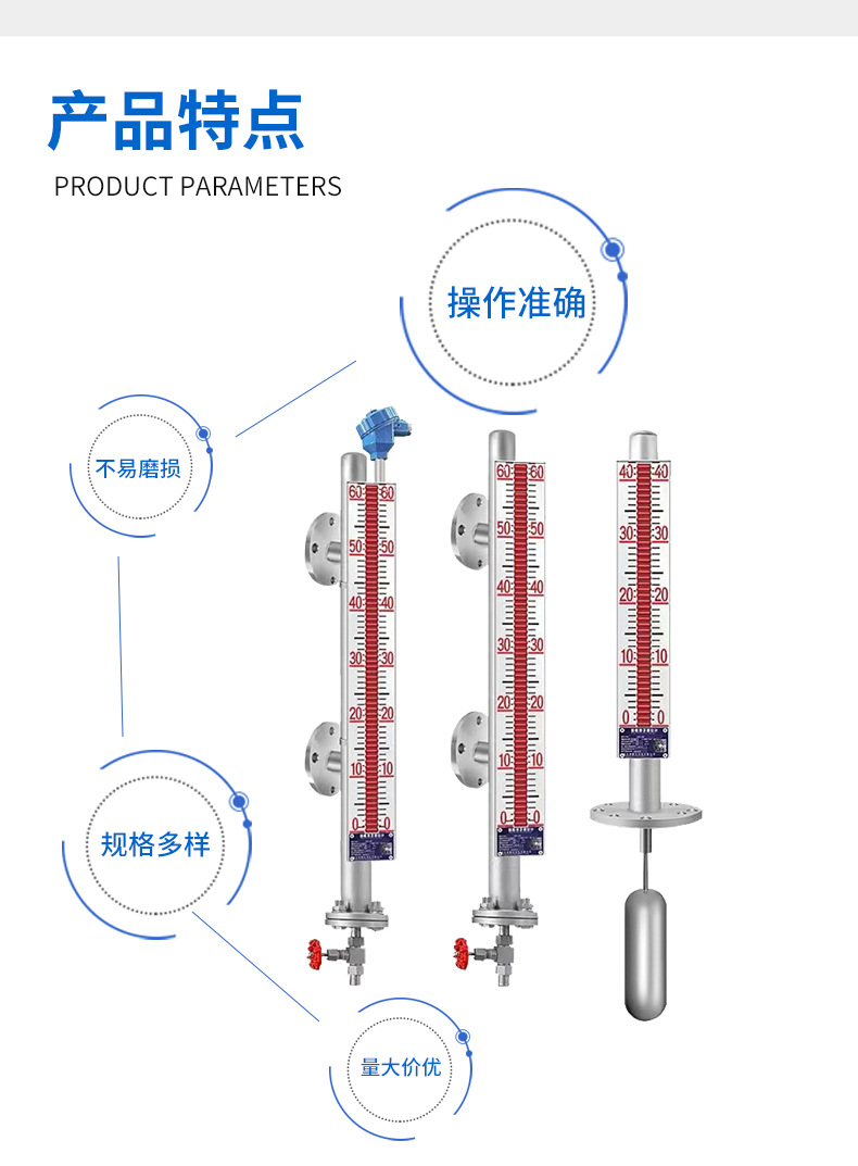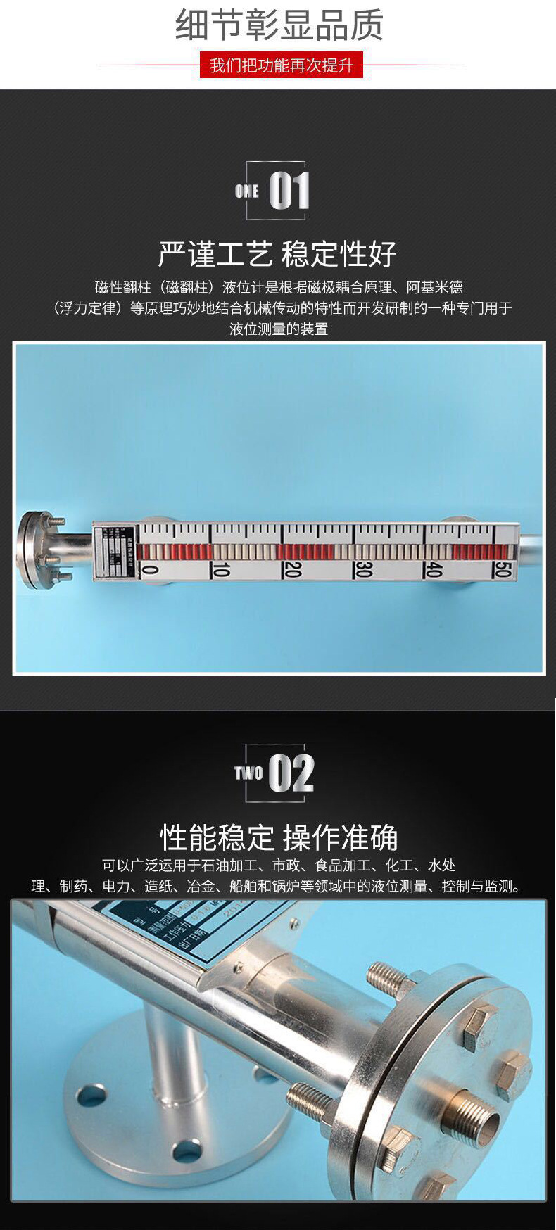 Pengukur level flap magnetik tempel di samping, alat pengukur level baja tahan karat anti korosi, meteran level float magnetik dengan alarm transmisi jarak jauh