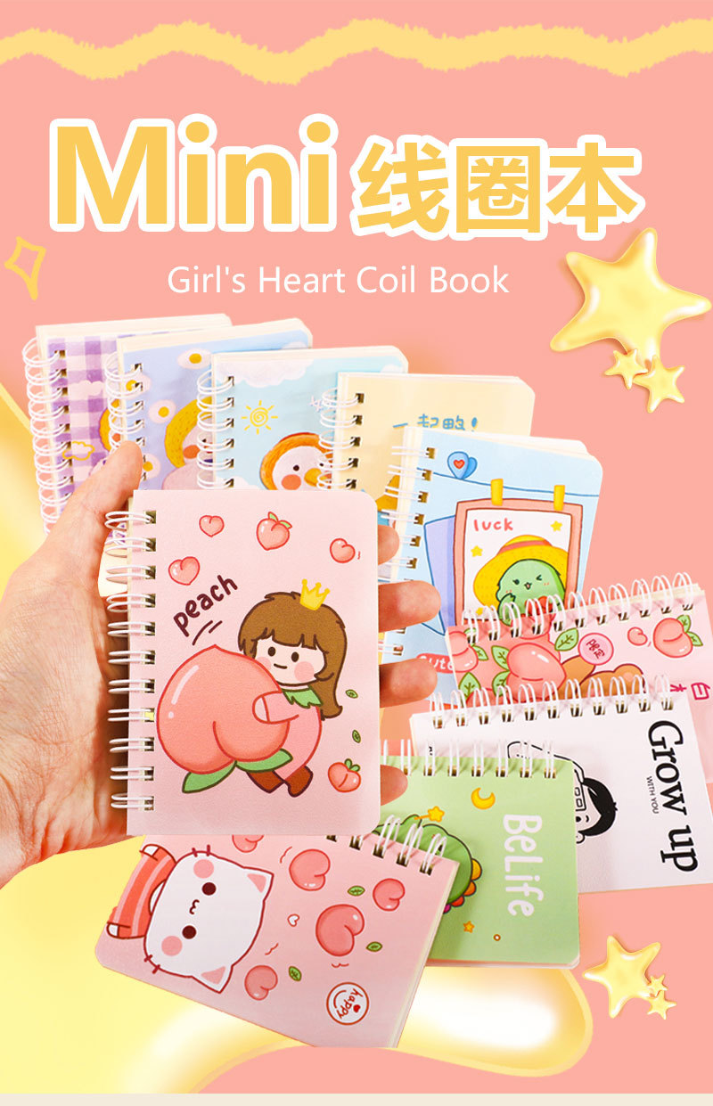 Buku koil mini A7, sampul keras tebal mini notebook kecil lucu segar tampilan tinggi notebook horisontal portabel
