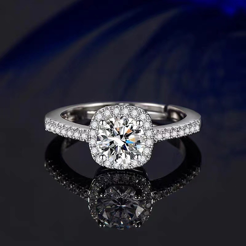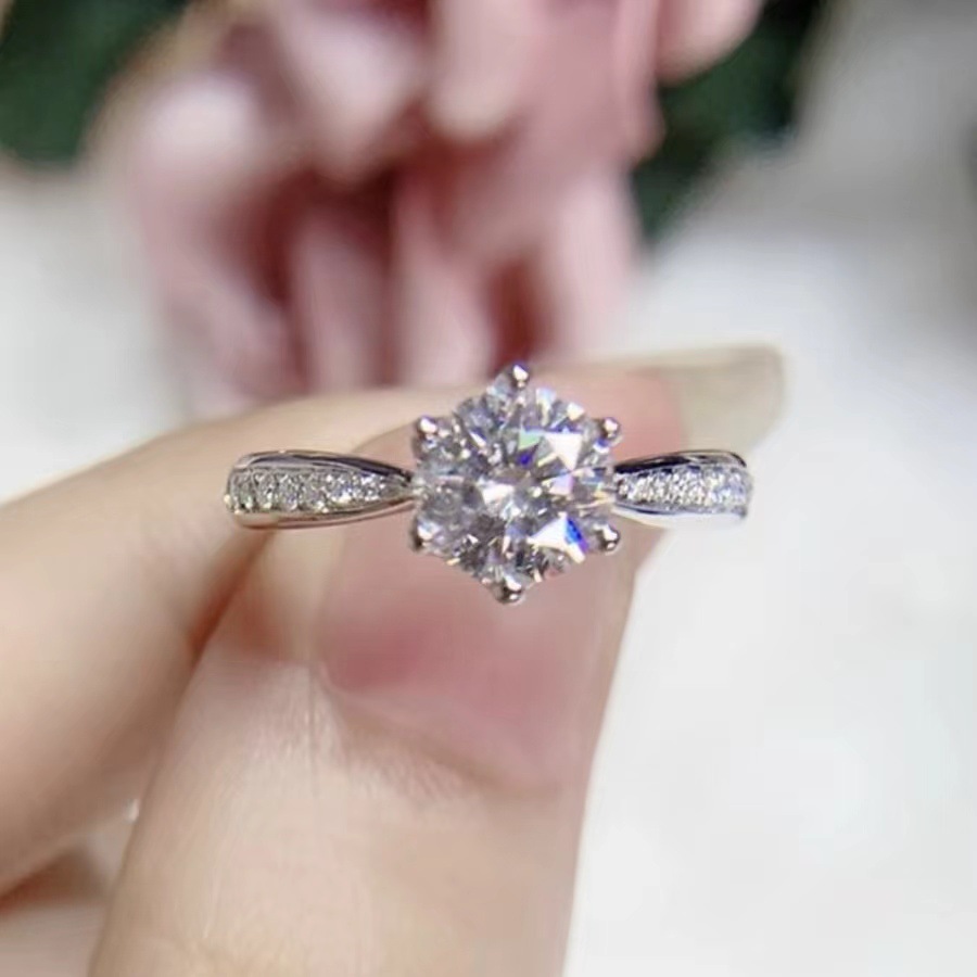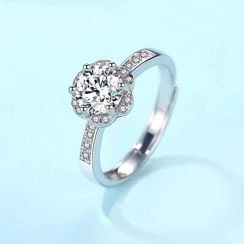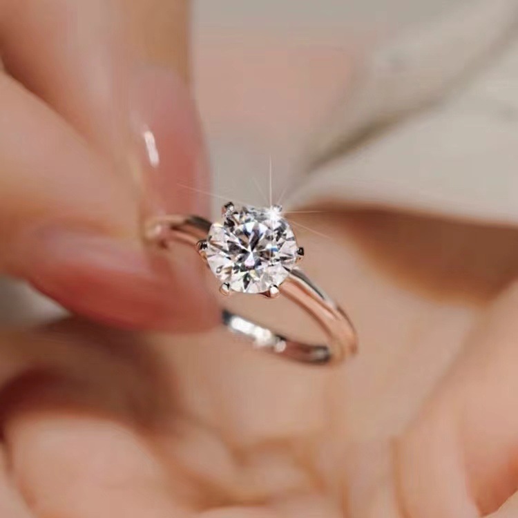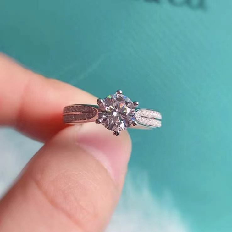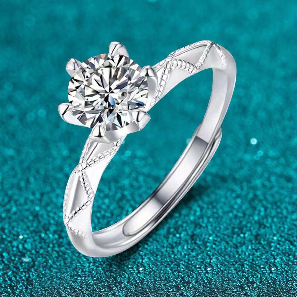 Cincin pasangan moissanite imitasi zirkon, cincin pasangan enam cakar 1 karat cincin berlian bukaan dapat disesuaikan lintas batas