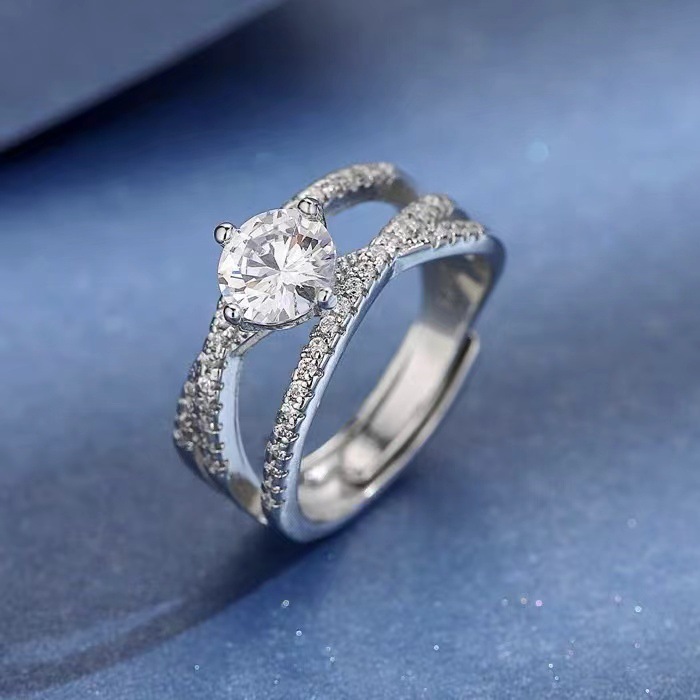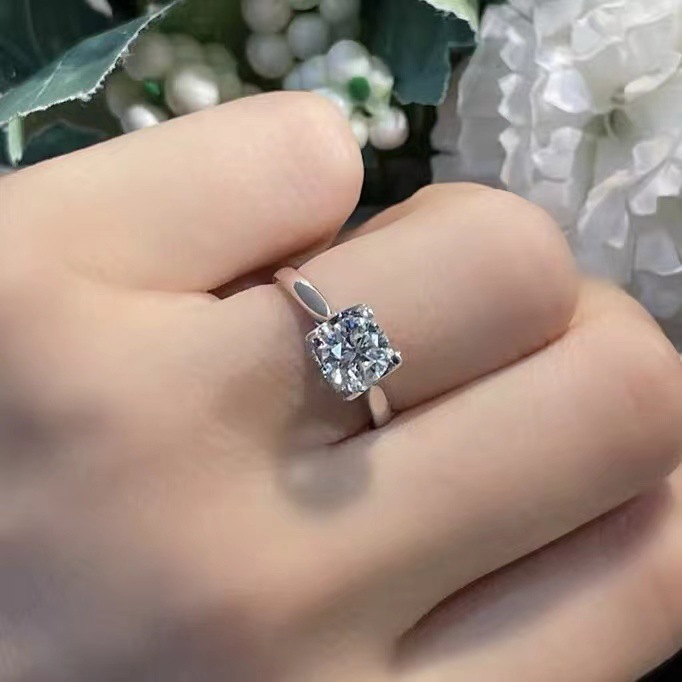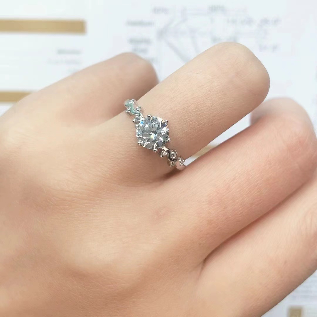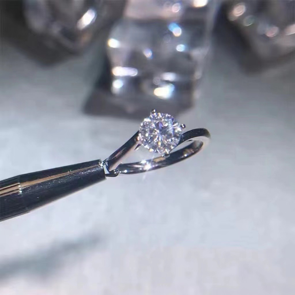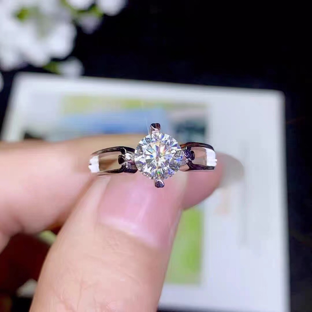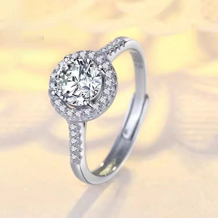 Cincin pasangan moissanite imitasi zirkon, cincin pasangan enam cakar 1 karat cincin berlian bukaan dapat disesuaikan lintas batas