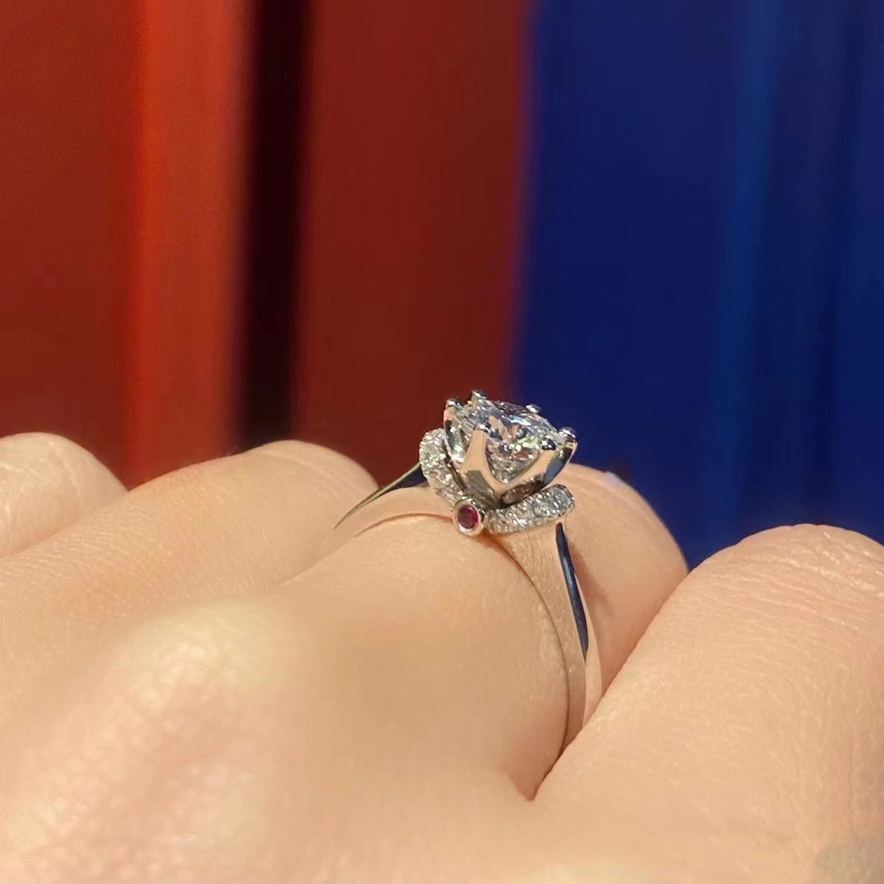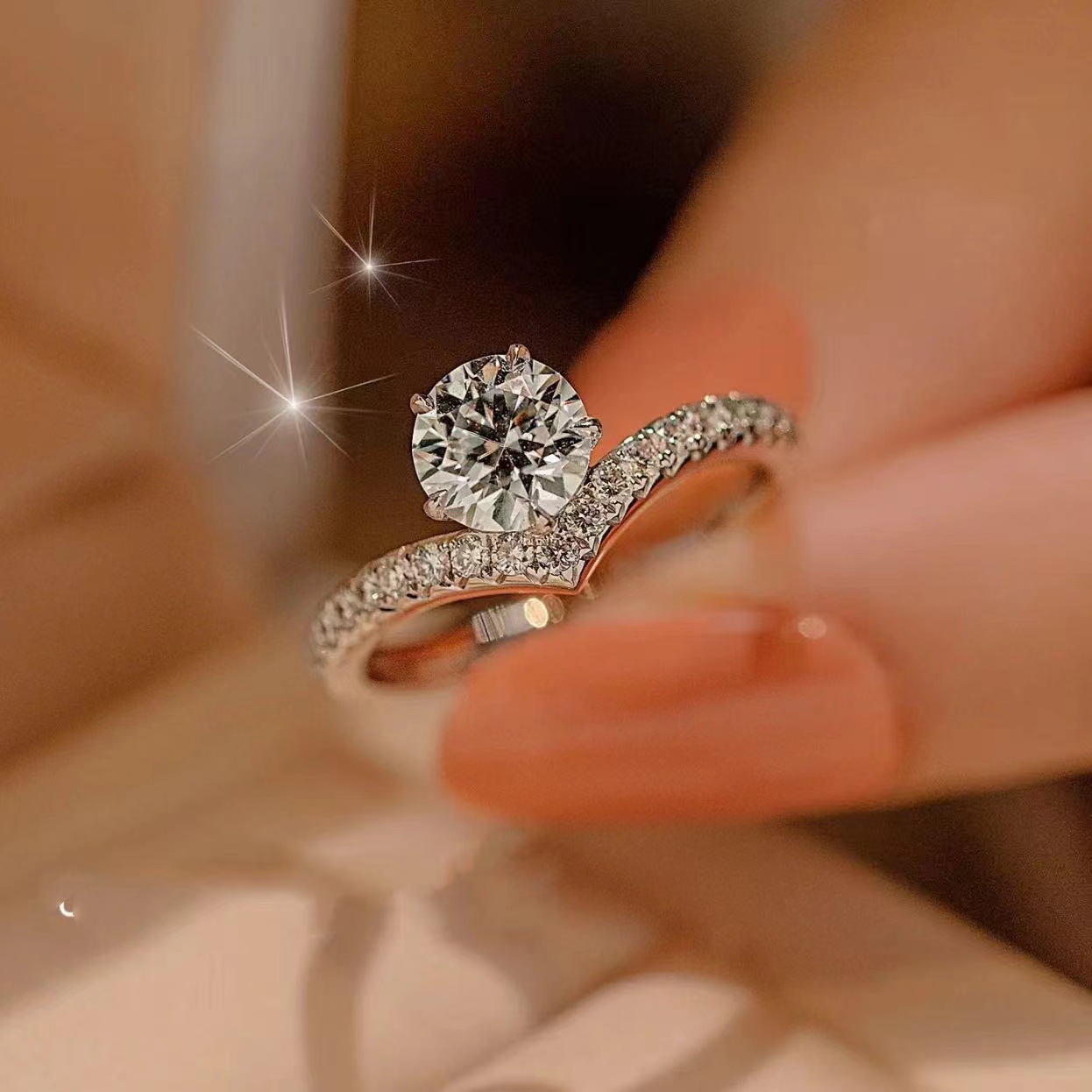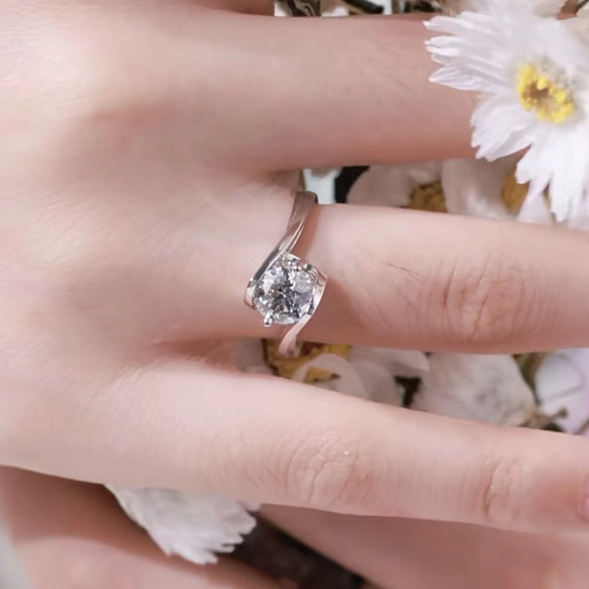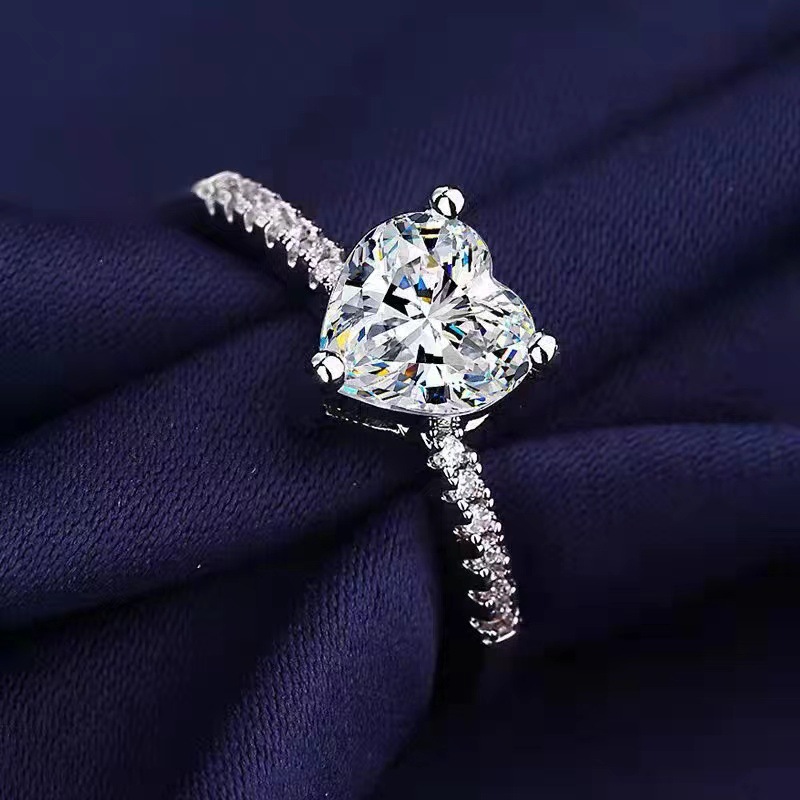 Cincin pasangan moissanite imitasi zirkon, cincin pasangan enam cakar 1 karat cincin berlian bukaan dapat disesuaikan lintas batas