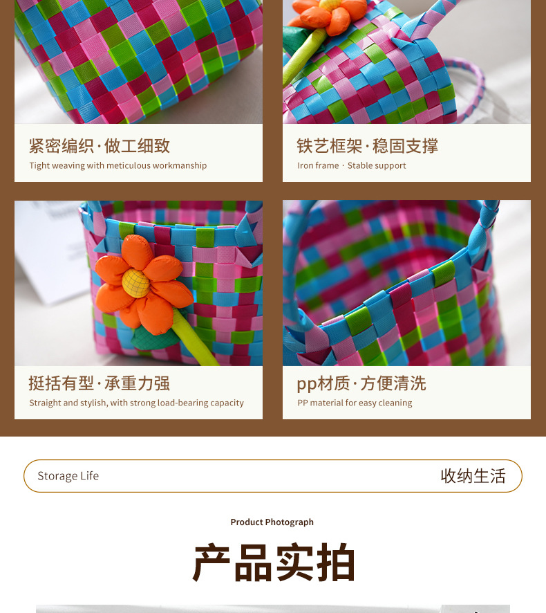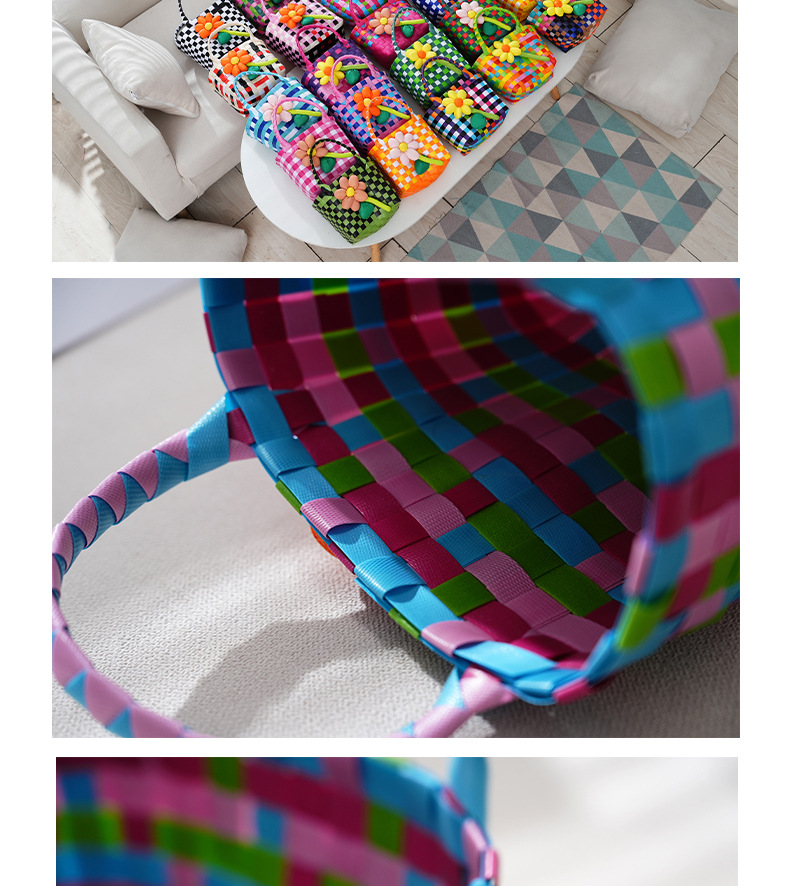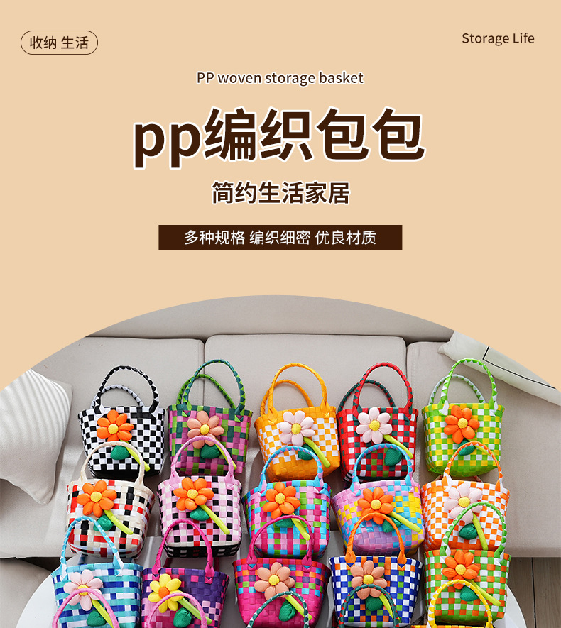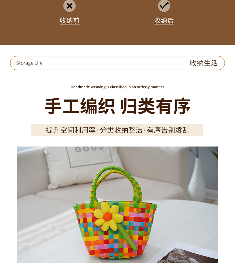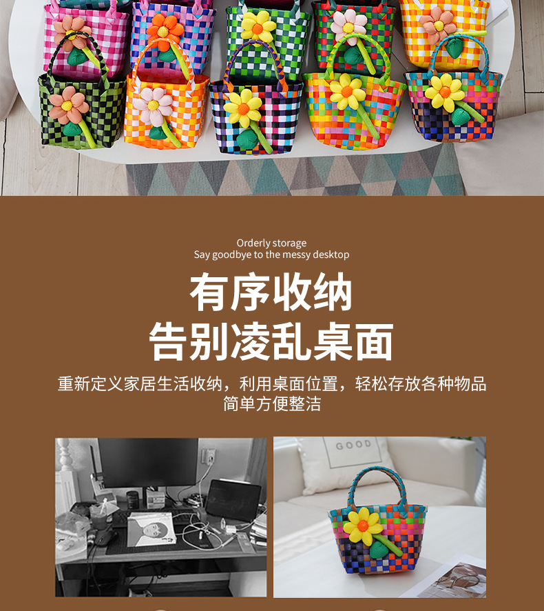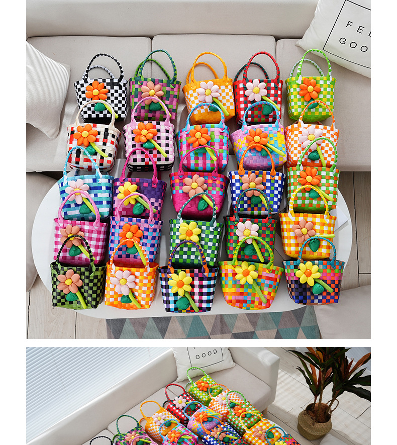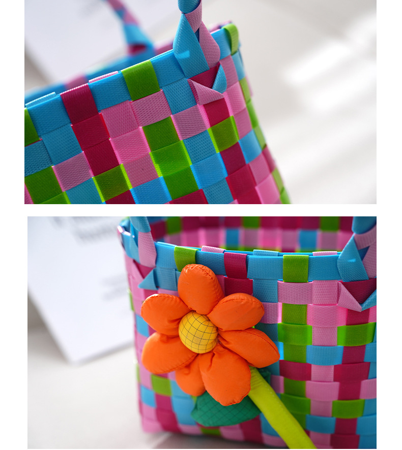 Tas kecil hadiah Hari Anak grosir, tas anyaman warna-warni, keranjang genggam, suvenir DIY kartun, lintas batas.