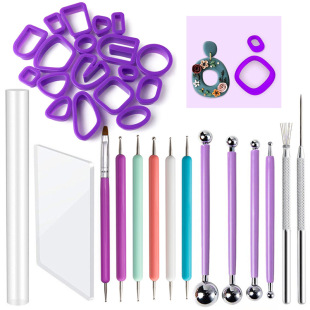 跨境陶艺工具32件套装粘土石塑耳环模具 亚克力棒搓泥板七本针