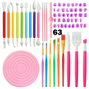 跨境陶艺工具63件套装石塑粘土雕刻刀 字母粒模具 转盘细节针