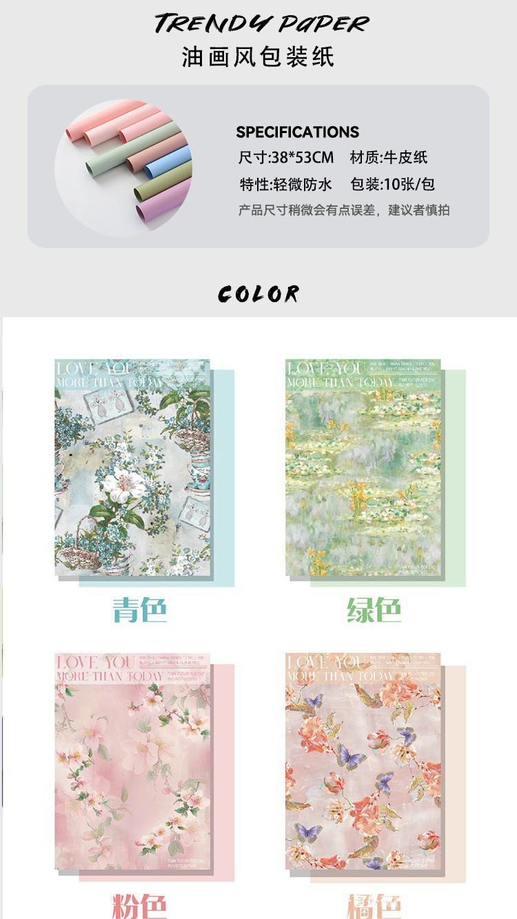 Kertas kado gaya lukisan minyak baru kertas kraft kemasan bunga hadiah buket bahan kemasan bahan toko bunga grosir