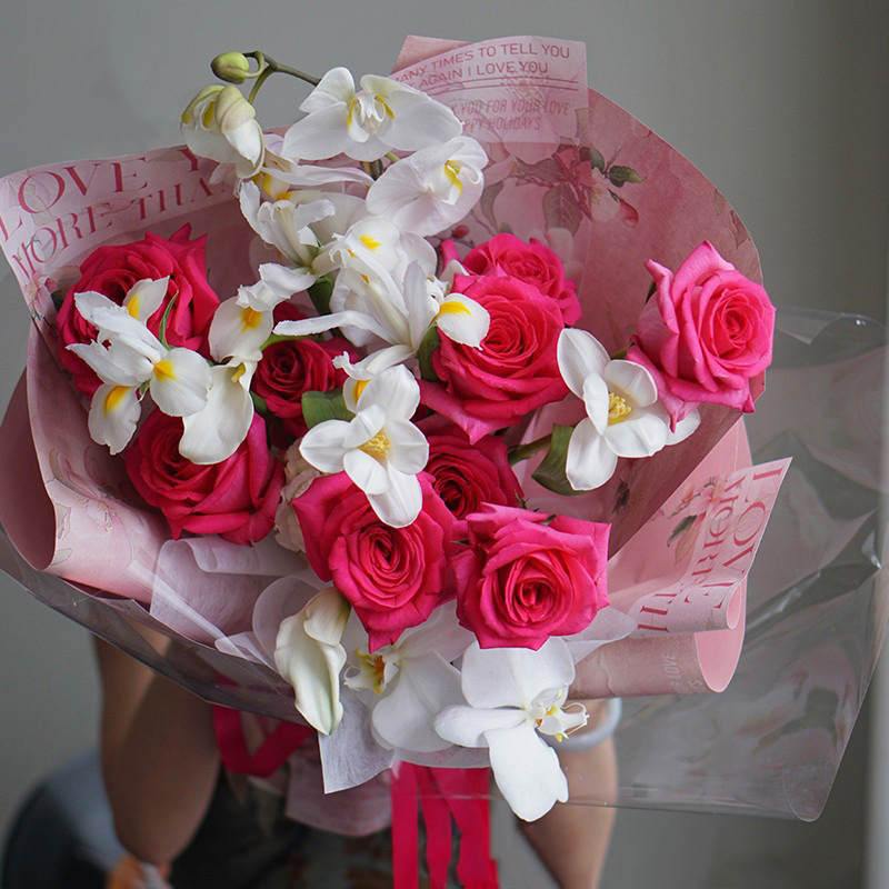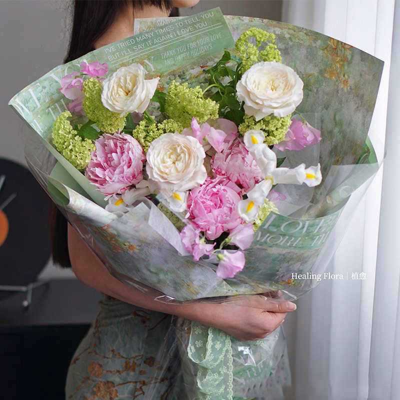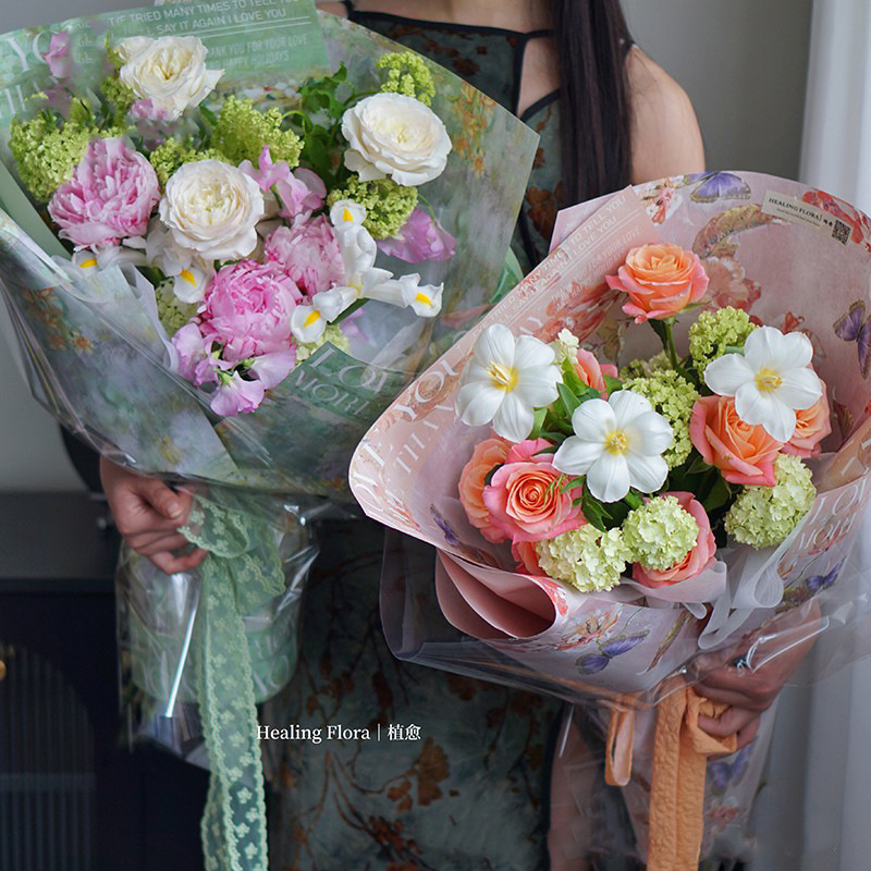 2025母亲节花束包装纸芳华系列鲜花包装花店花艺牛皮纸方形手提袋