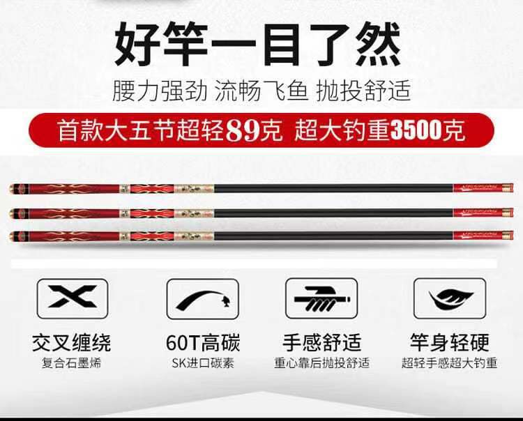 Tang joran pancing karbon hiu terbang, tongkat pancing aliran ultra ringan keras 28 dapat disesuaikan untuk memancing di Danau meja grosir