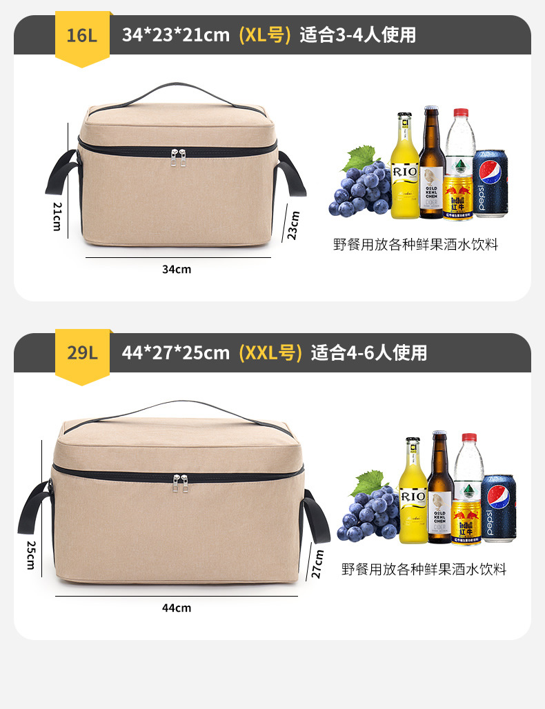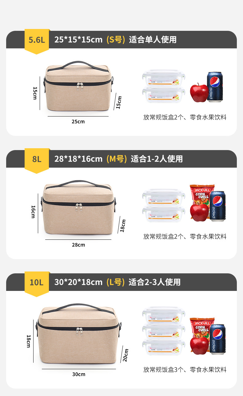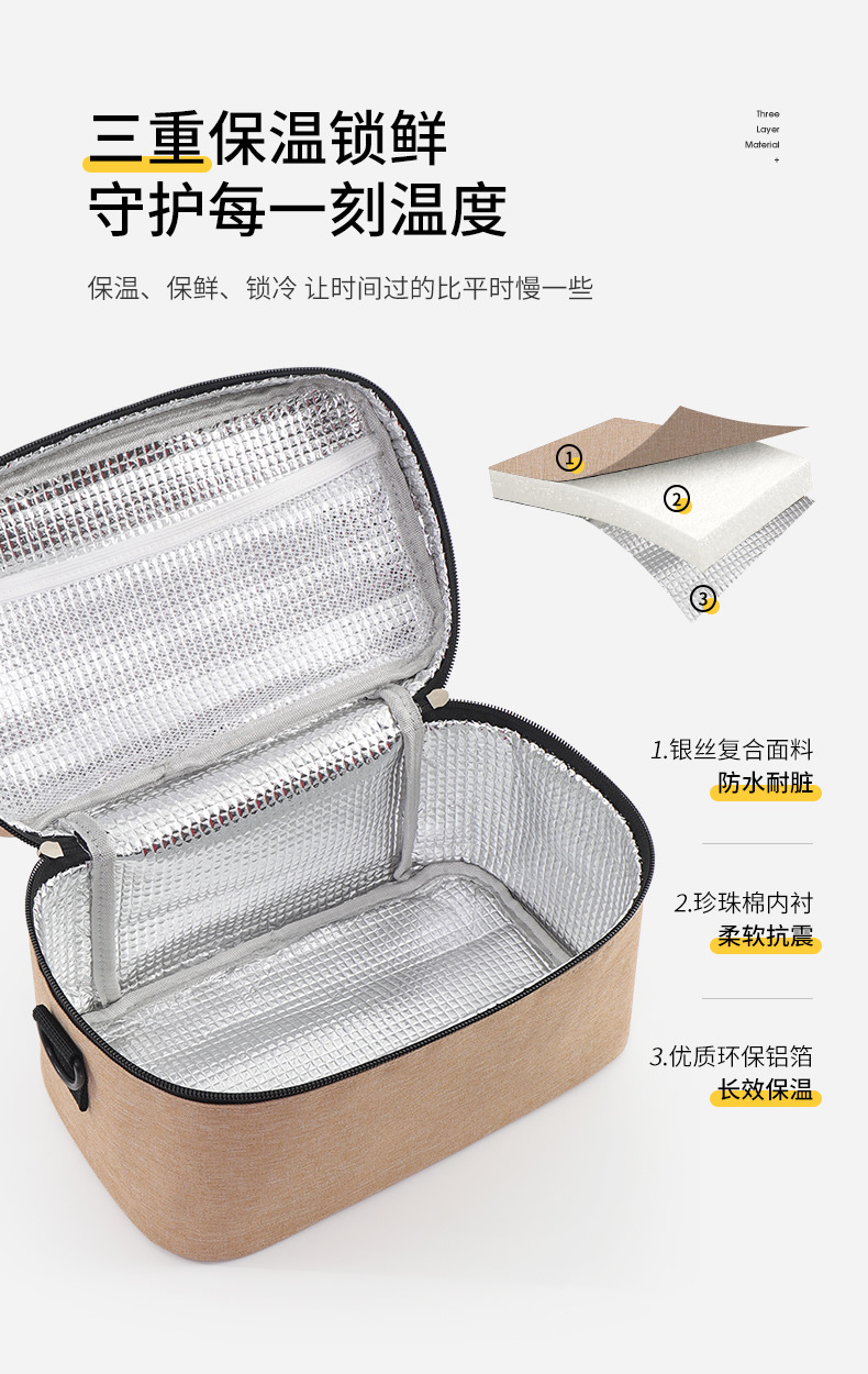 Tas kotak makan siang tas insulasi persegi tas makan siang dipertebal aluminium foil tas kotak insulasi makanan ringan tas piknik kapasitas besar