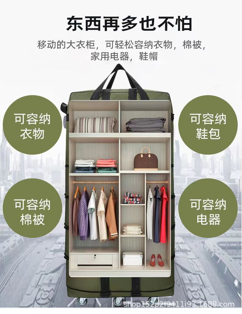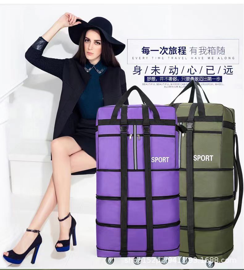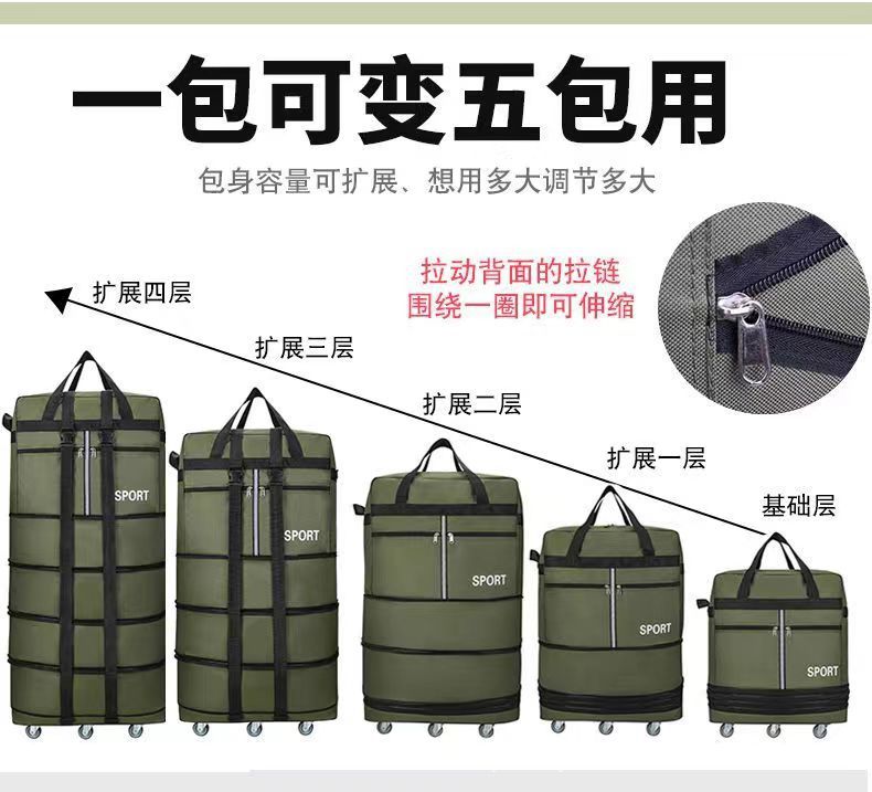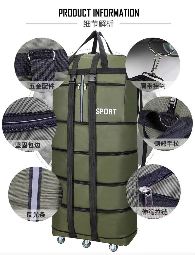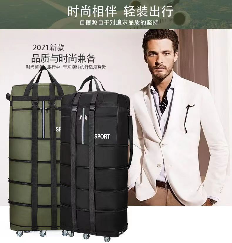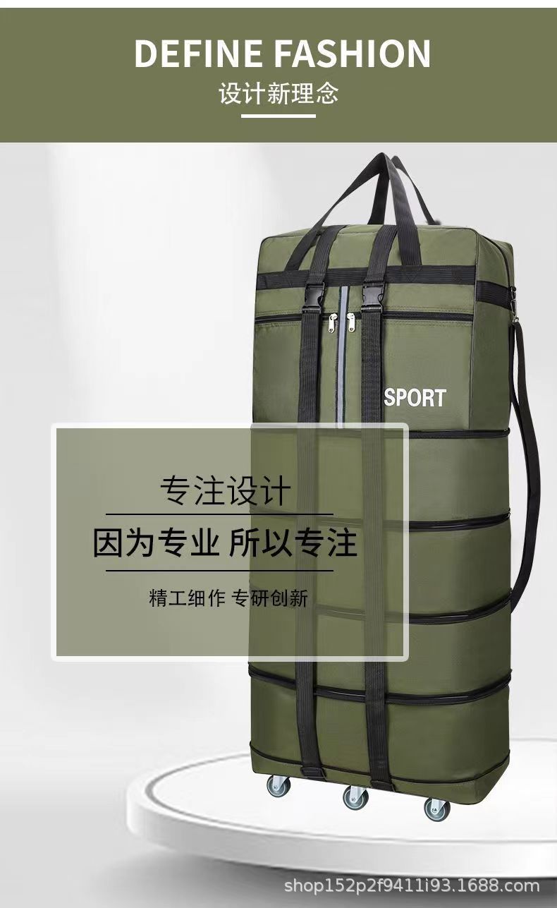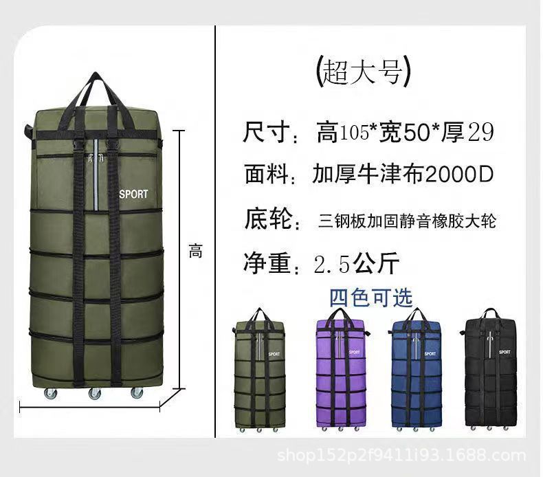 Tas pembawa udara 158 lipat tahan air, tas koper bergerak kapasitas besar dengan roda universal, tas perjalanan dapat ditarik