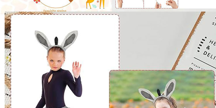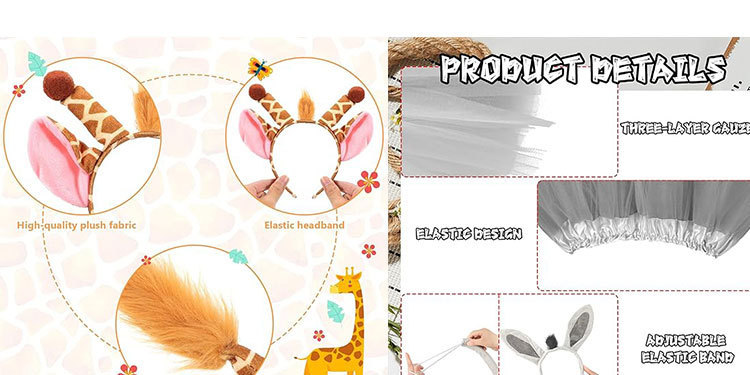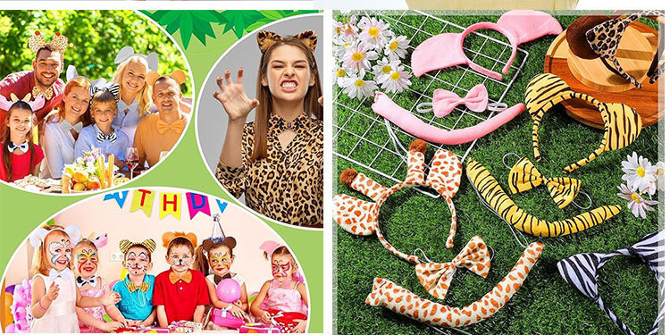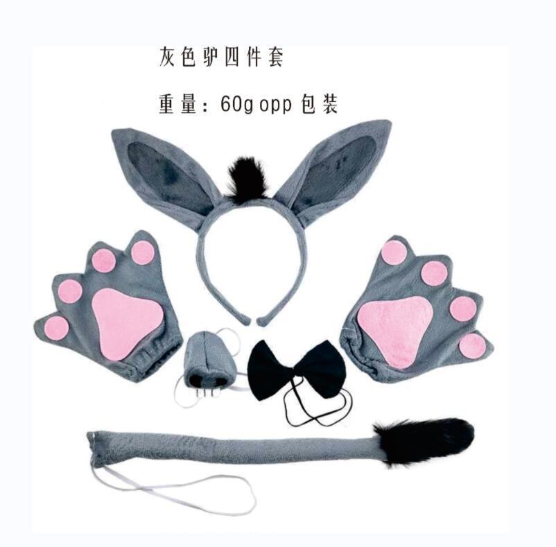 六一儿童节卡通头箍头饰动物三件套兔子猫老虎耳朵领结尾巴成人儿