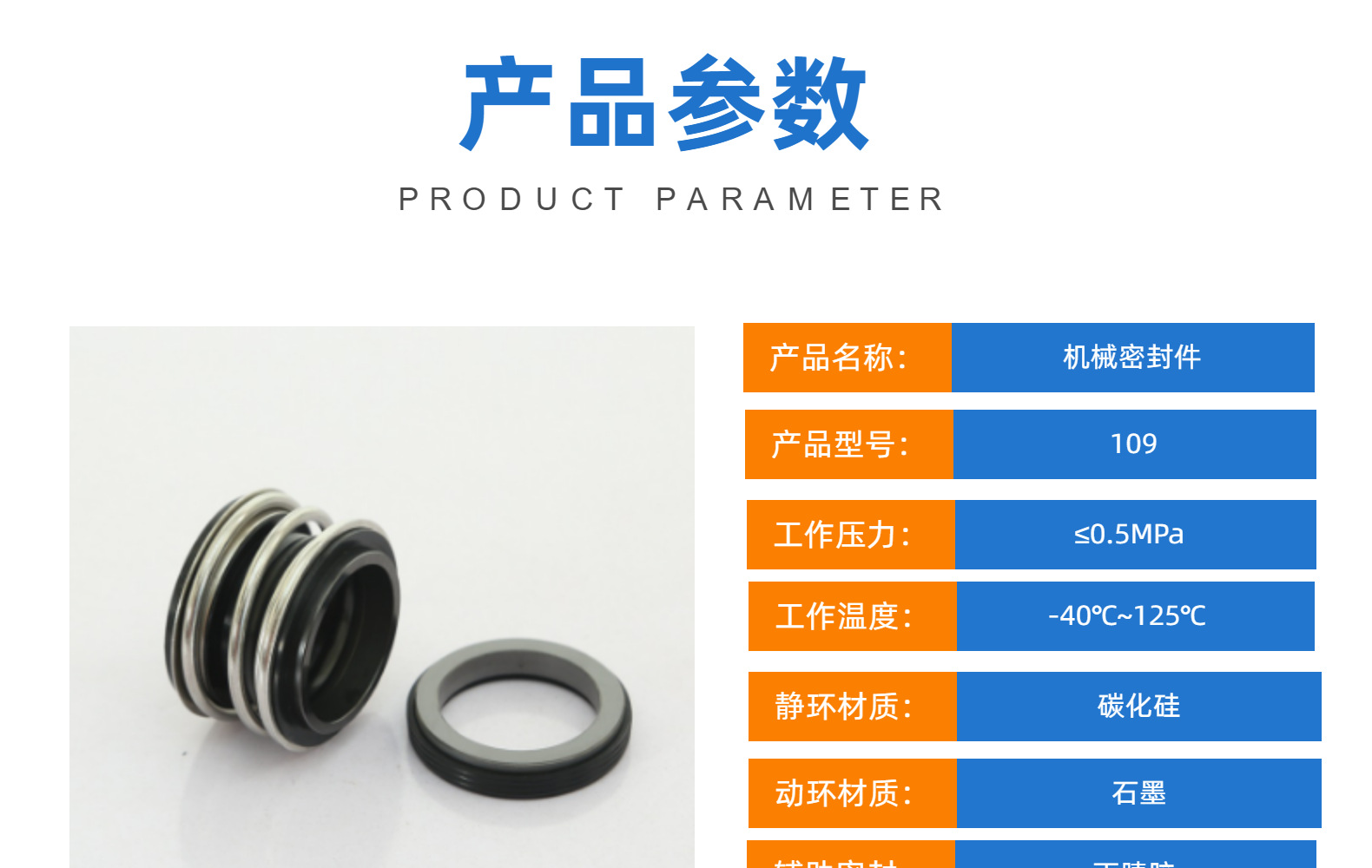 109/MG1/MB komponen seal mekanis, ring seal pompa air, seal mekanis grafit silikon karbida, seal poros, seal air untuk pompa.