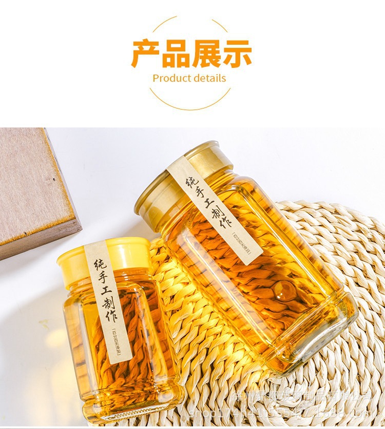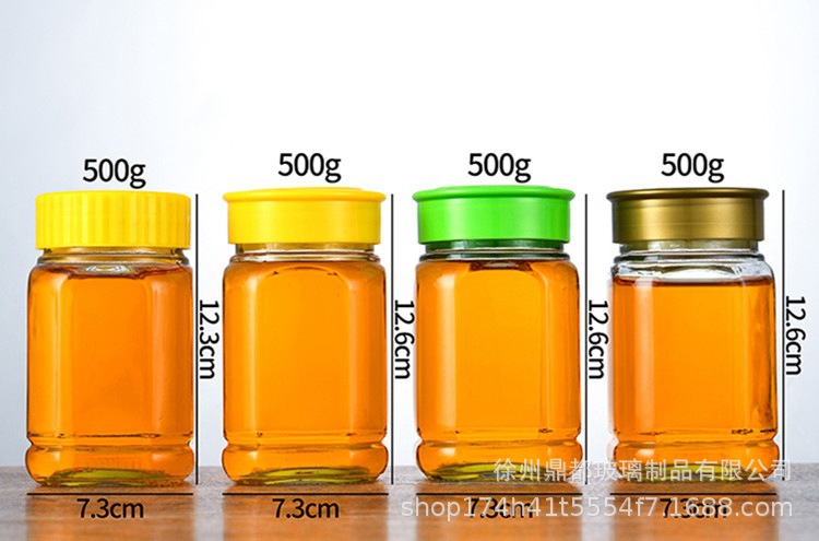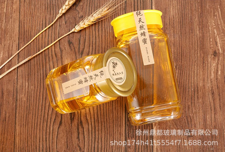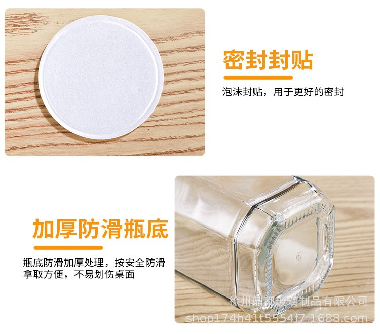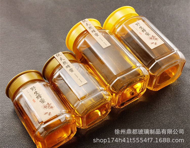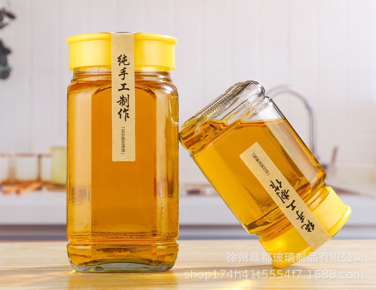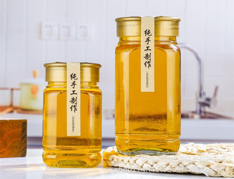Grosir botol madu oktagonal 1 jin 2 jin botol kaca botol acar botol penyimpan makanan disegel dengan tutup