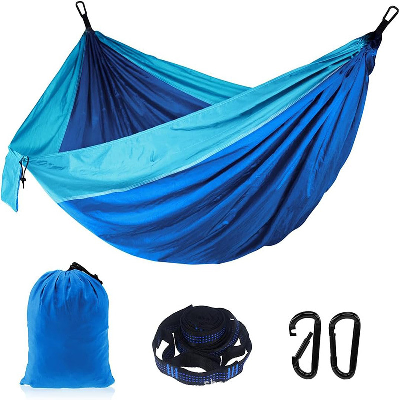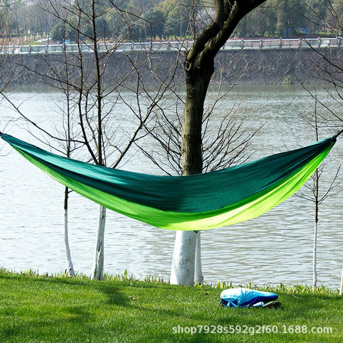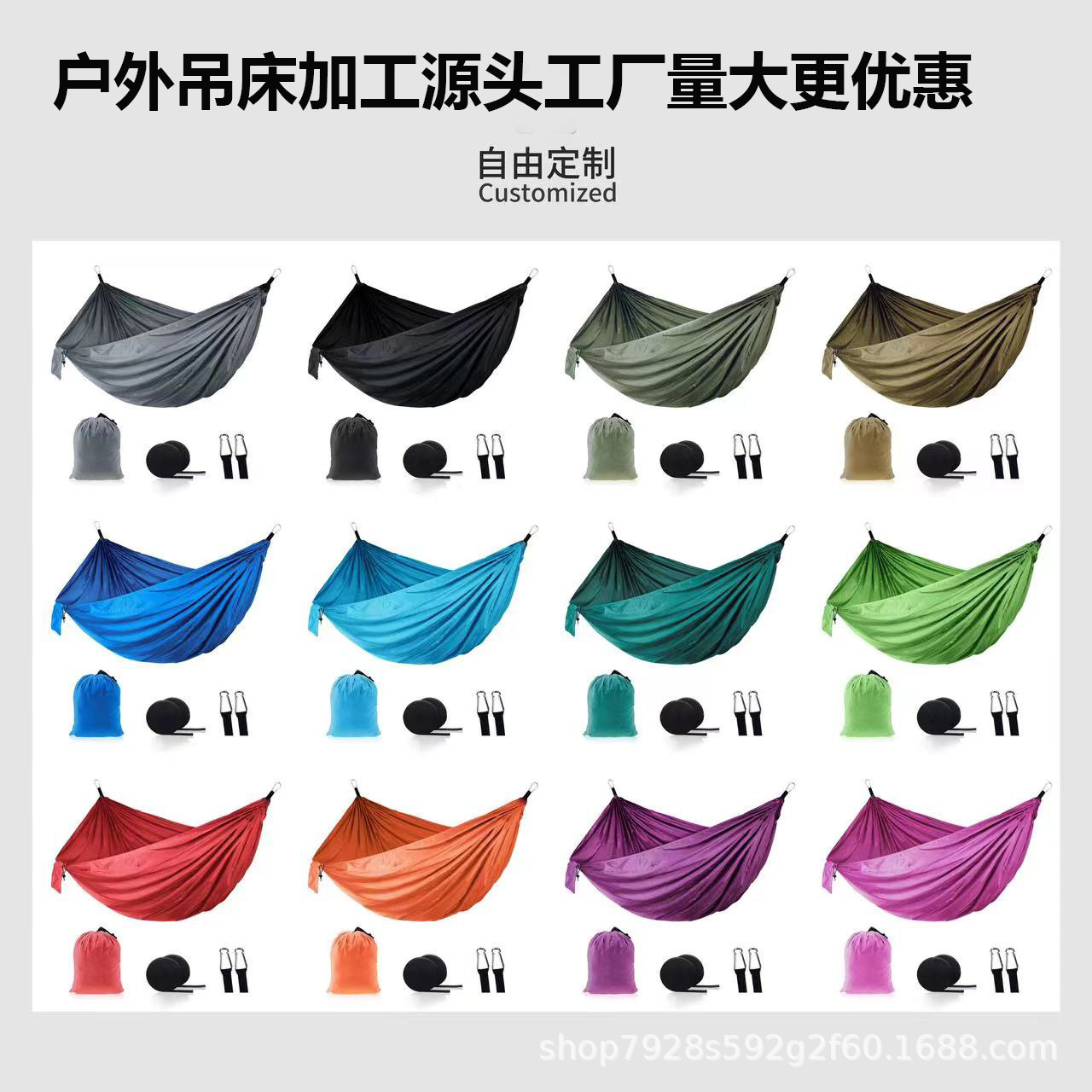 Hammock kain parasut tunggal dan ganda untuk luar ruangan dari produsen, ayunan nilon lebar warna-warni dengan tali pengikat untuk dalam ruangan.