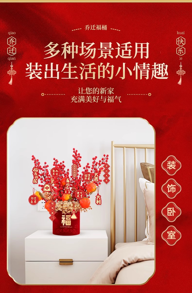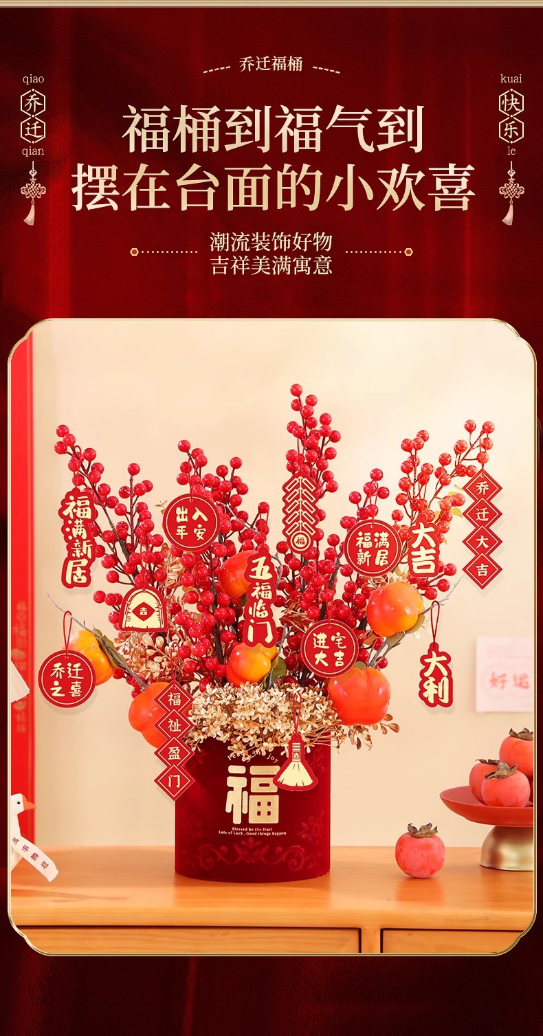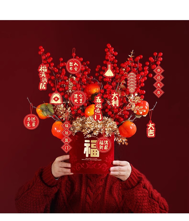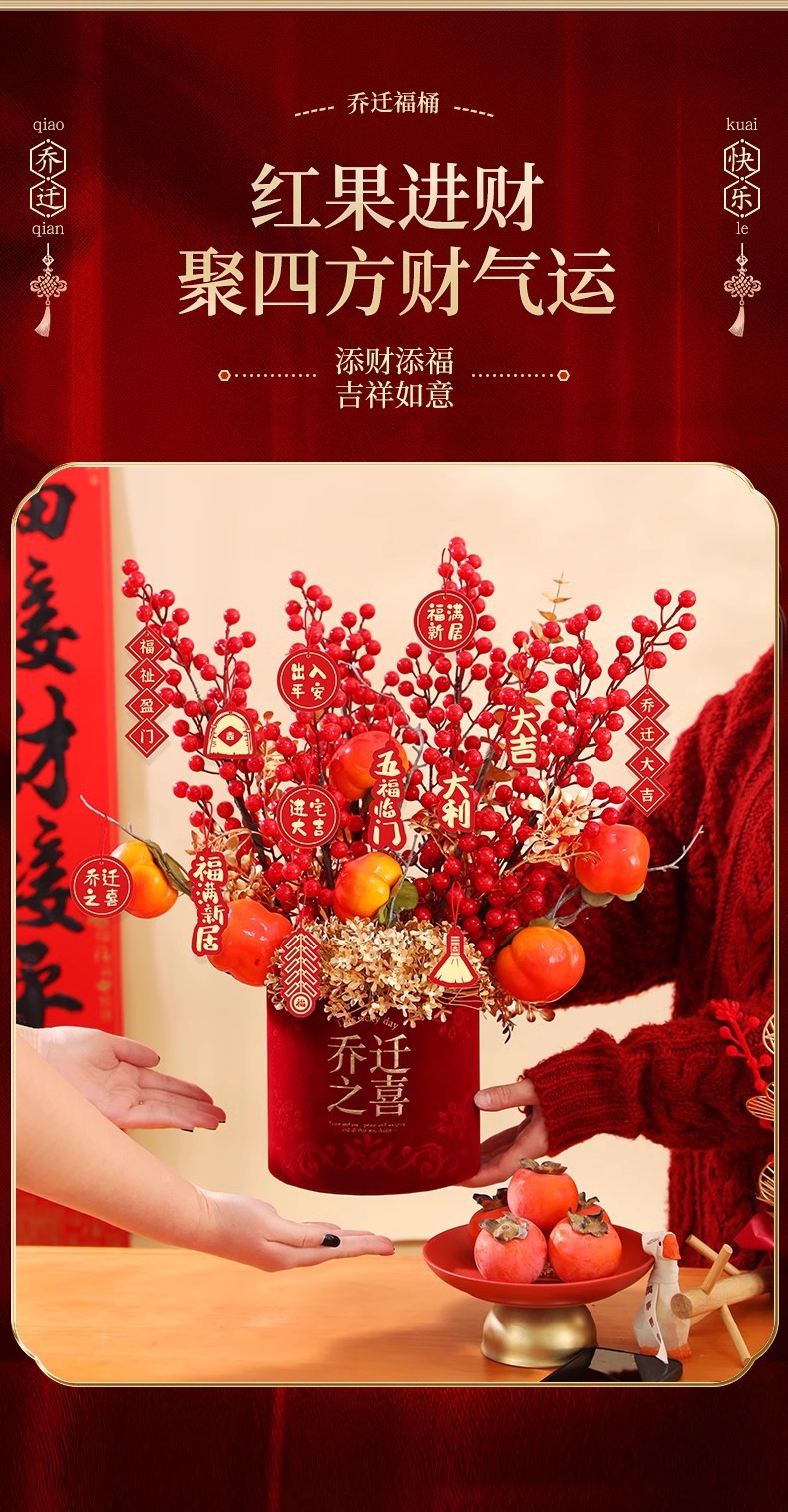 Dekorasi rumah tangga ruang tamu Dekorasi Keberuntungan pernikahan Dekorasi ember keberuntungan Tahun Baru bergerak pelukan bunga makanan ringan Tahun Baru