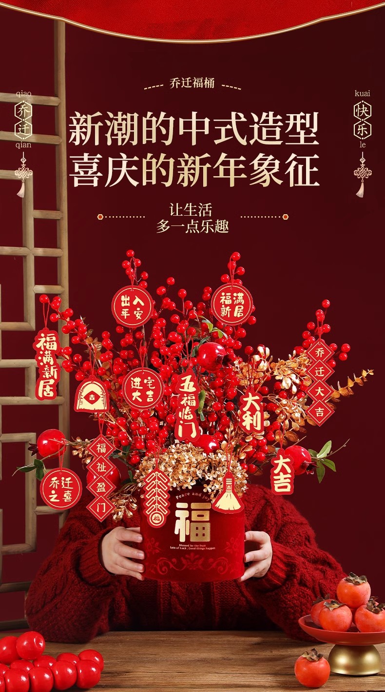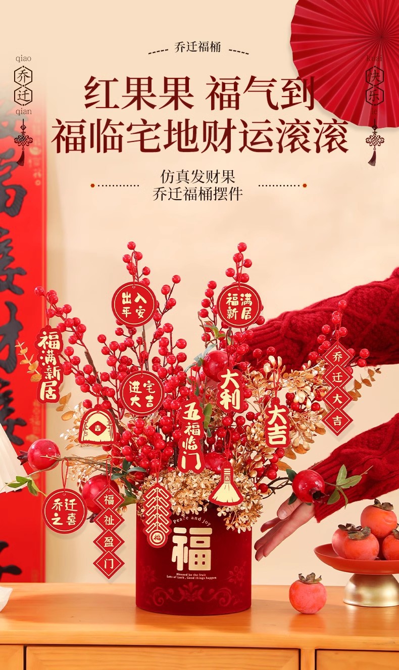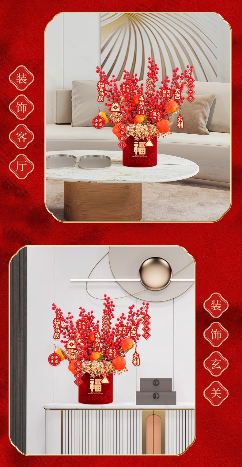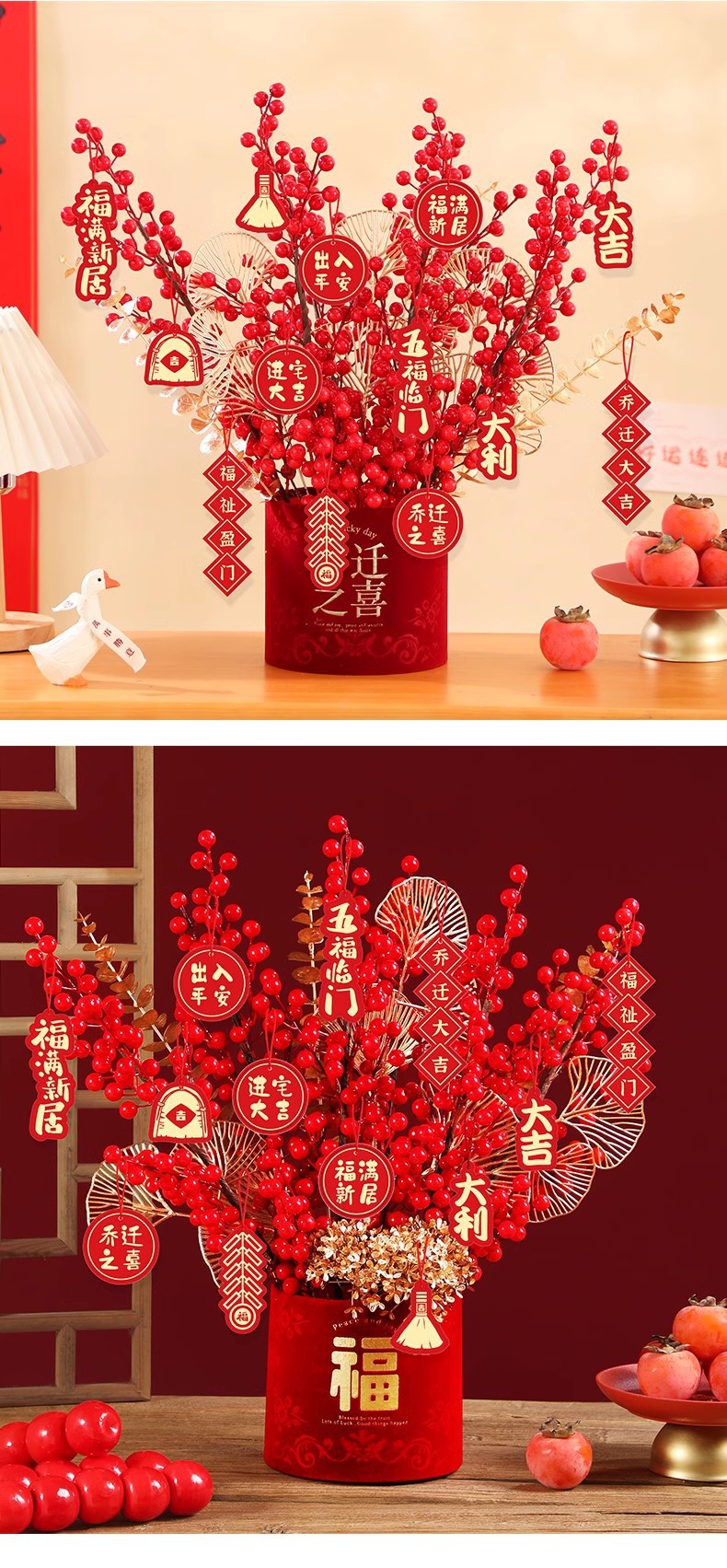Dekorasi rumah tangga ruang tamu Dekorasi Keberuntungan pernikahan Dekorasi ember keberuntungan Tahun Baru bergerak pelukan bunga makanan ringan Tahun Baru